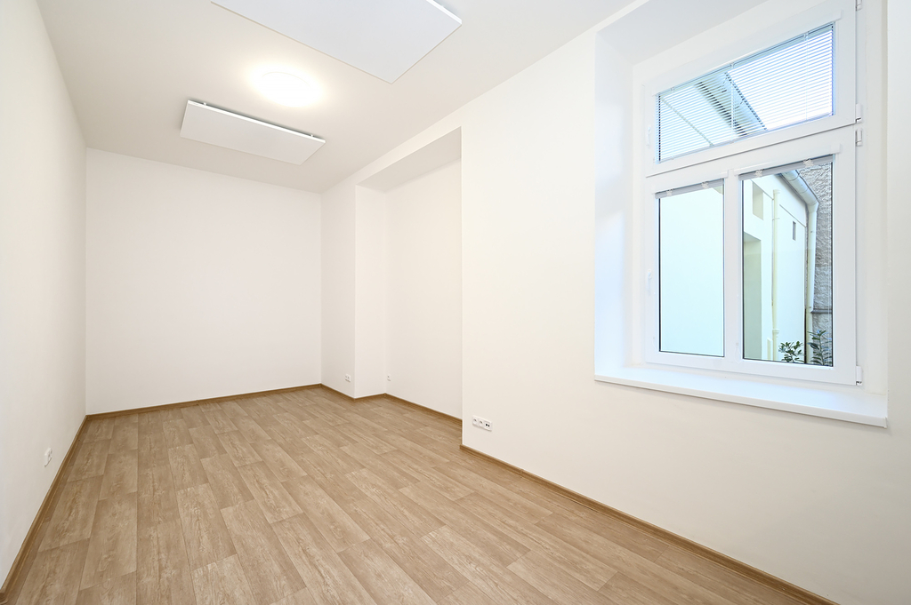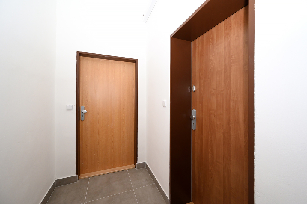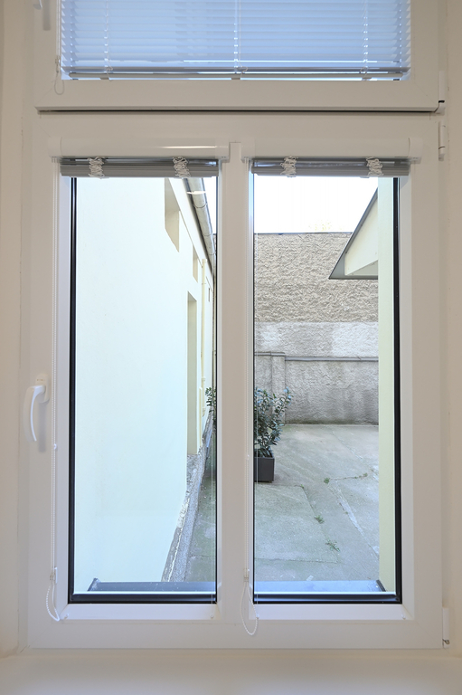 Byt je orientován do tichého vnitrobloku, což zajišťuje klidné bydlení i v živé městské části. Díky umístění v přízemí je výhled z oken částečně omezený, jak je patrné z fotografií, ale byt je světlý a rozhodně netrpí nedostatkem denního světla.