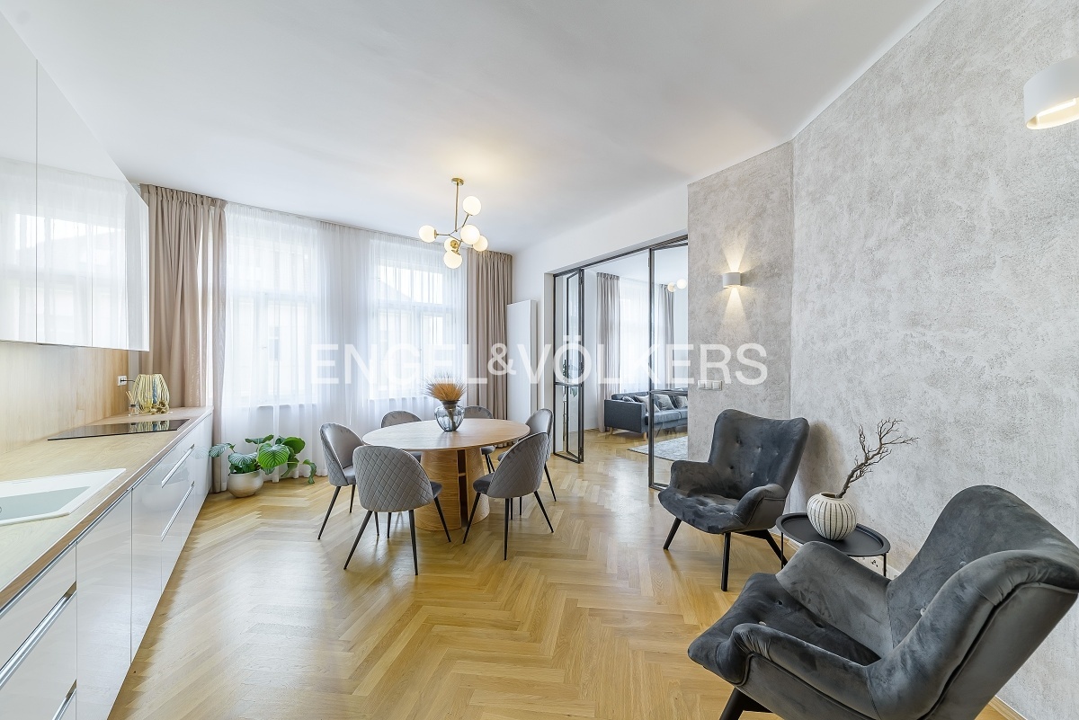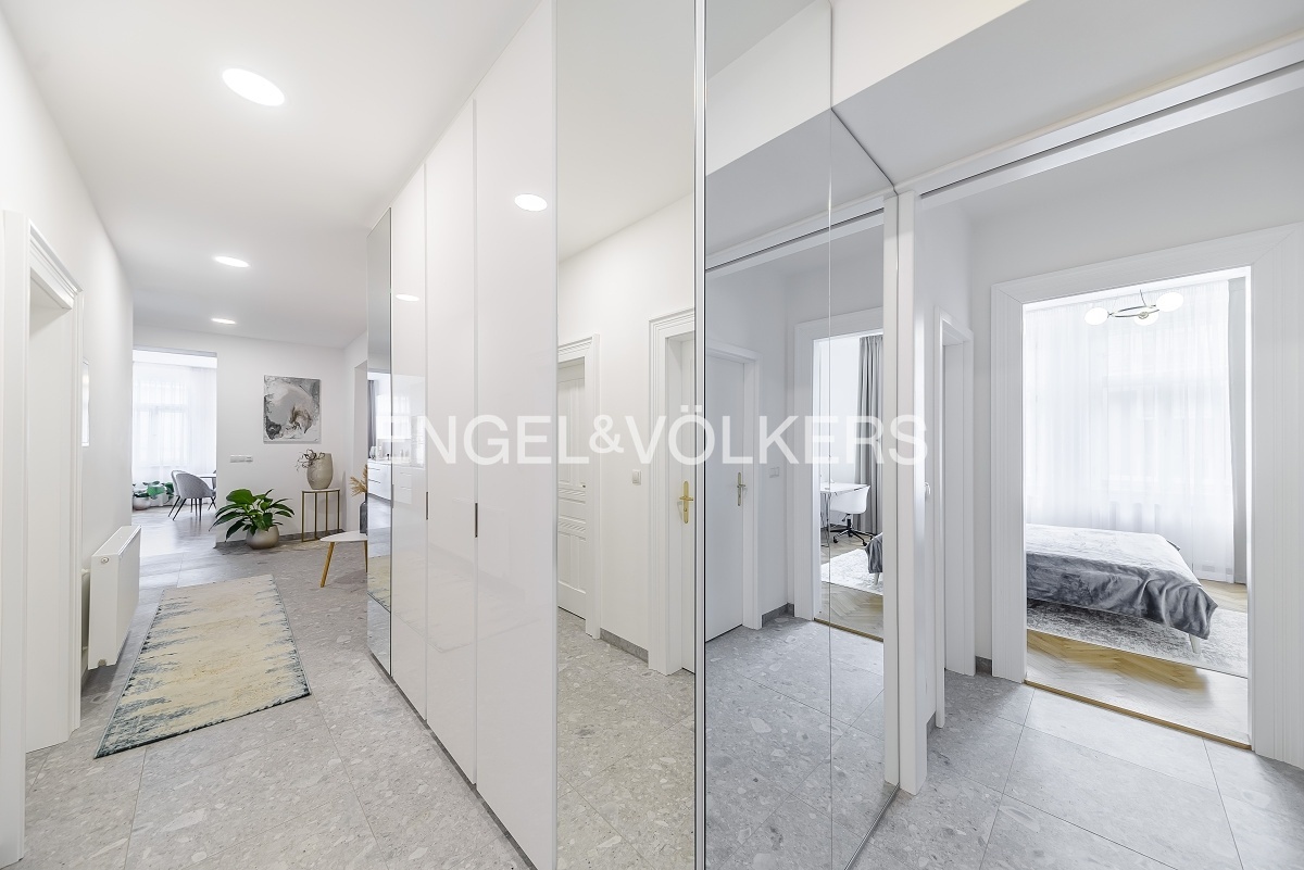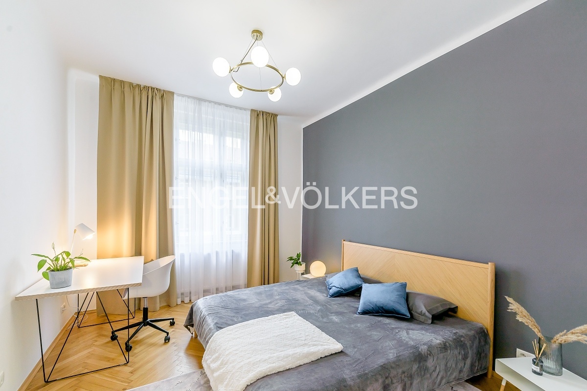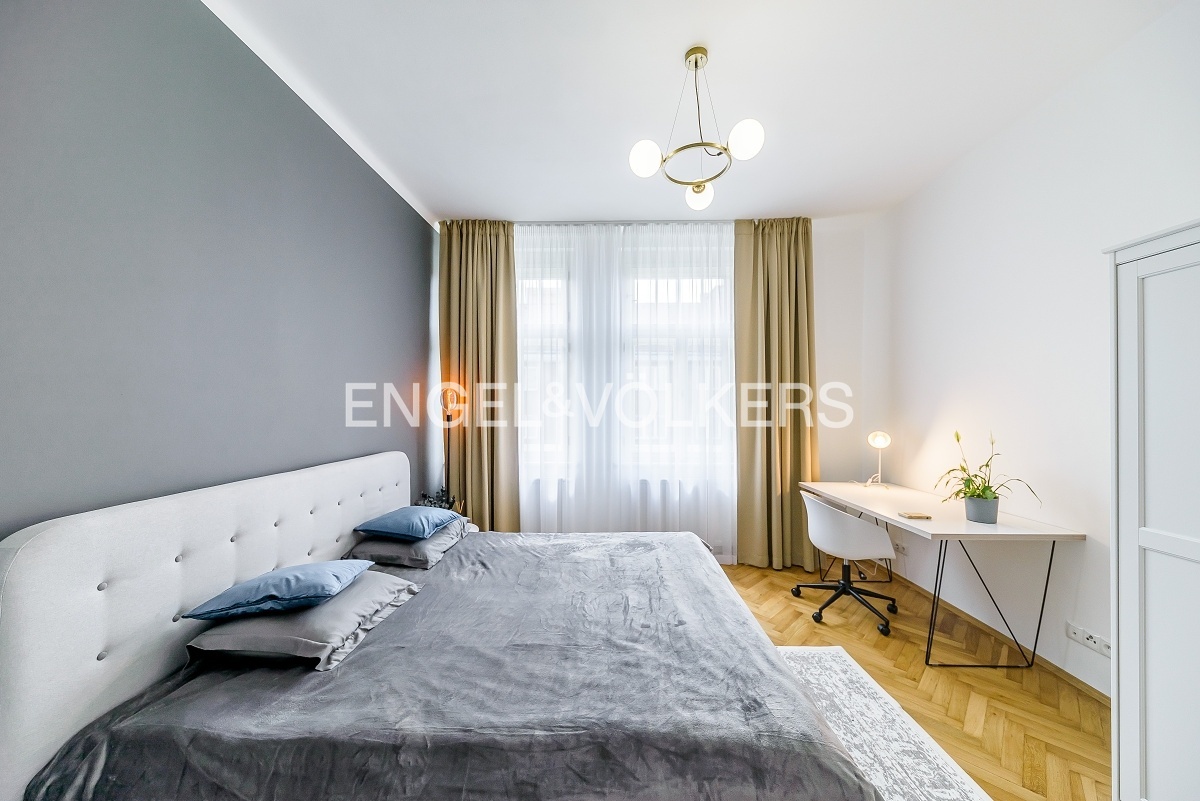 K dlouhodobému pronájmu od 1. 1. 2026 nabízíme čerstvě zrekonstruovaný velkorysý byt se třemi ložnicemi a dvěma koupelnami, který se nachází jen pár kroků od oblíbeného náměstí Jiřího z Poděbrad. Důkladná a nákladná rekonstrukce pod vedením studia bytového designu dokázala z prostoru vytěžit maximum a výsledkem je toto nadstandardní bydlení ve vyhledávané lokalitě. Jedná se o netradiční nabídku bytu vybaveného zcela novým vybavením - k nastěhování Vám postačí pouze kufr s osobními věcmi. Pronájem je však možný i bez nábytku, dle volby nájemce.