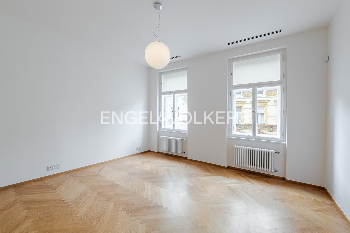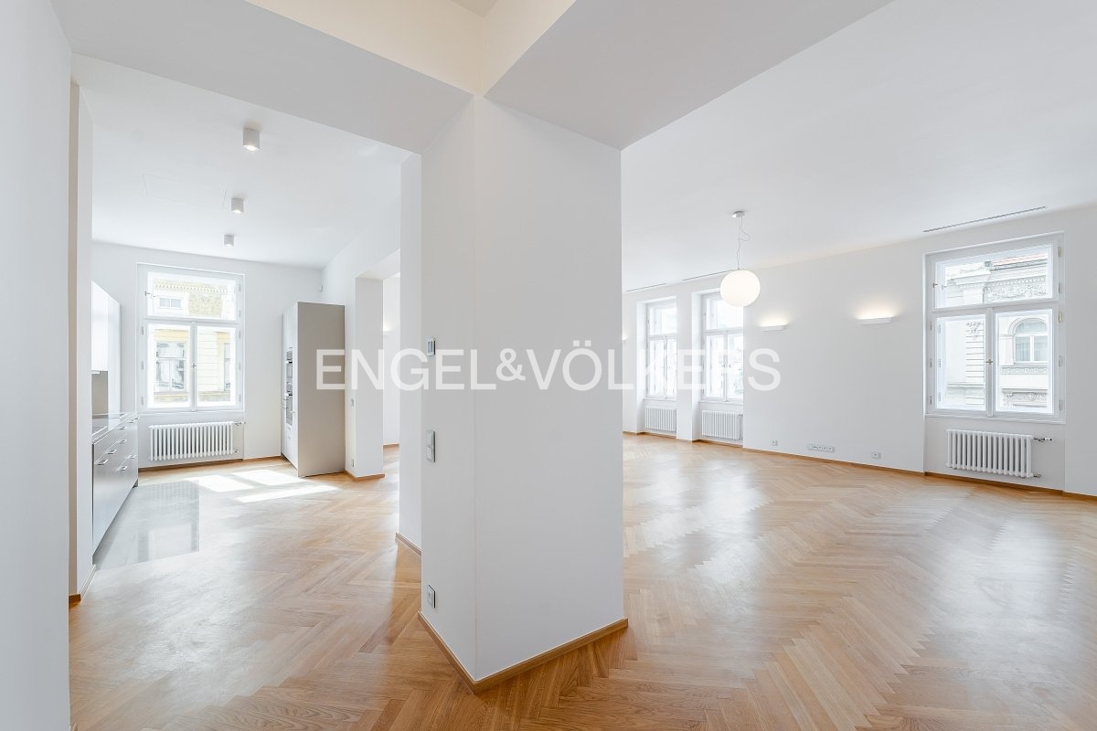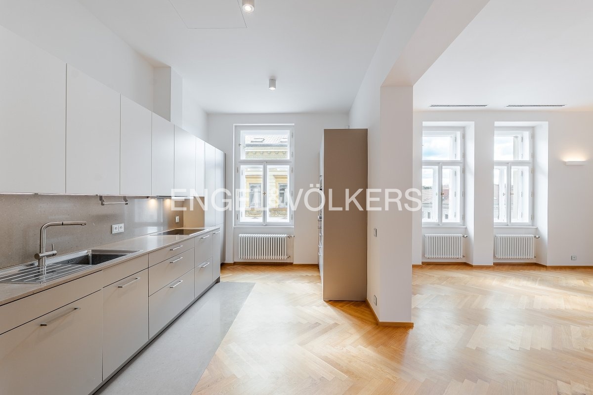 Nadstandardní byt se nachází v 5. nadzemním podlaží secesního činžovního domu z konce 19. století, který nyní prošel kompletní rekonstrukcí.