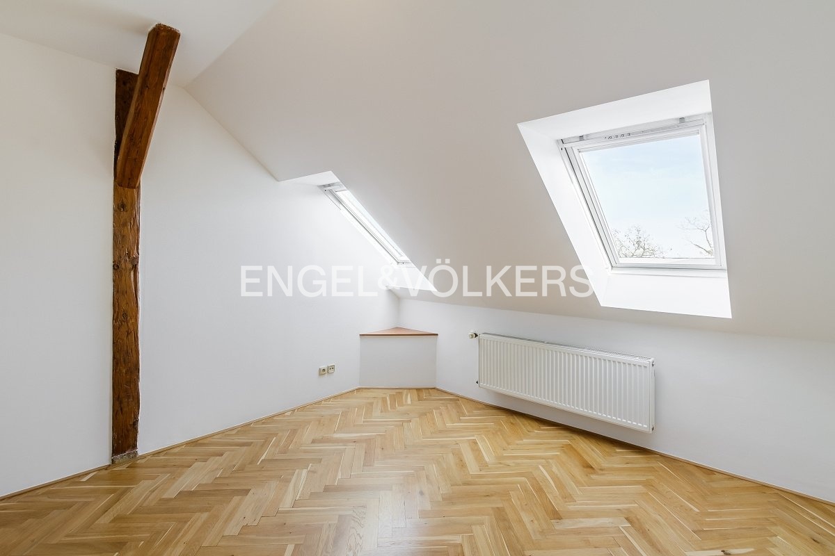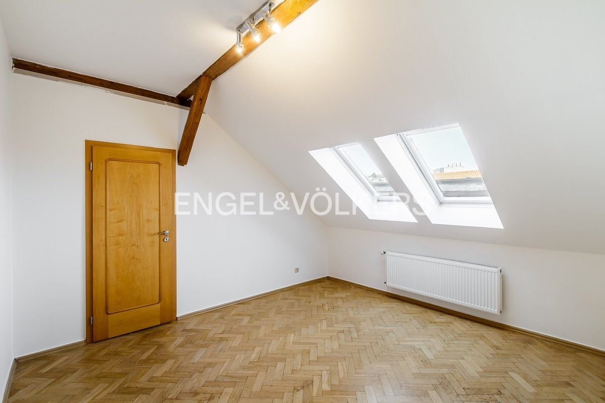 Nabízíme k prodeji prostorný a světlý byt 6+1 ve 4. nadzemním podlaží činžovního domu v ulici Na Skalce, Smíchov. Díky umístění v nejvyšším patře panuje v bytě klid a soukromí, zatímco velká okna orientovaná na tři světové strany zajišťují dostatek přirozeného světla po celý den.