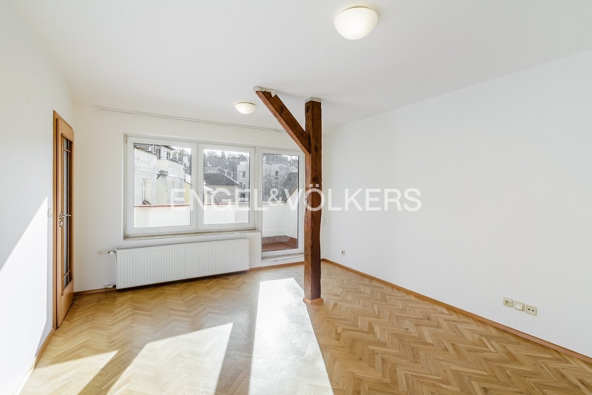 Nabízíme k prodeji prostorný a světlý byt ve 4. nadzemním podlaží činžovního domu v ulici Na Skalce, Smíchov. Díky umístění v nejvyšším patře panuje v bytě klid a soukromí, zatímco velká okna orientovaná na tři světové strany zajišťují dostatek přirozeného světla po celý den.