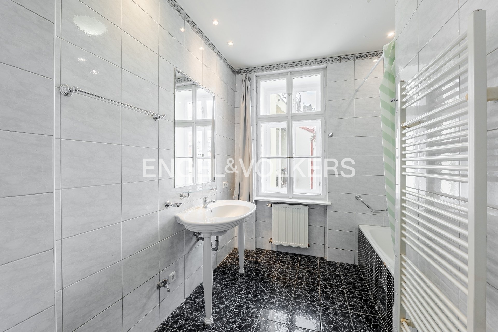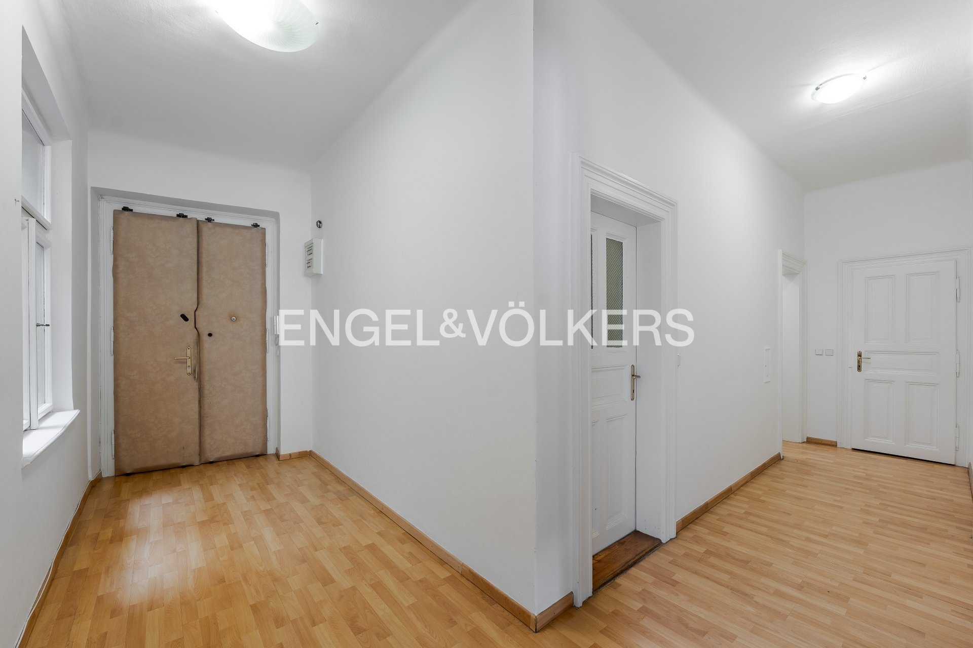 Interiér si zachoval řadu původních prvků, jako jsou vysoké stropy, špaletová okna s dvojskly (balkonové dveře do vnitrobloku jsou plastové) či typické dvoukřídlé dveře, které podtrhují vzdušnost a příjemnou atmosféru bytu. Jednotka je v udržovaném stavu, podlahy v pokojích tvoří parkety a vinyl. Vytápění i ohřev vody zajišťuje kondenzační kotel, energetická náročnost budovy je třídy D, měsíční náklady se pohybují okolo 7 000 Kč. Společné prostory domu jsou pečlivě udržované a zaujmou i dekorativními stropními malbami, samozřejmostí je výtah. Dům má zateplenou střechu a fasáda prošla během posledních deseti let rekonstrukcí.