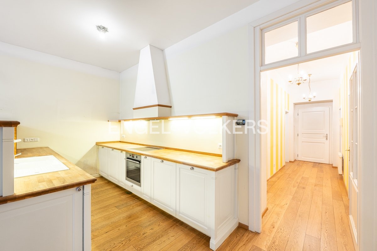Dominantou bytu je velkorysá kuchyně se všemi spotřebiči a s jídelnou. Samostatný obývací pokoj nabízí klidný a reprezentativní prostor pro odpočinek. Byt dále disponuje čtyřmi dalšími pokoji, které lze využít dle individuálních potřeb nájemců.
