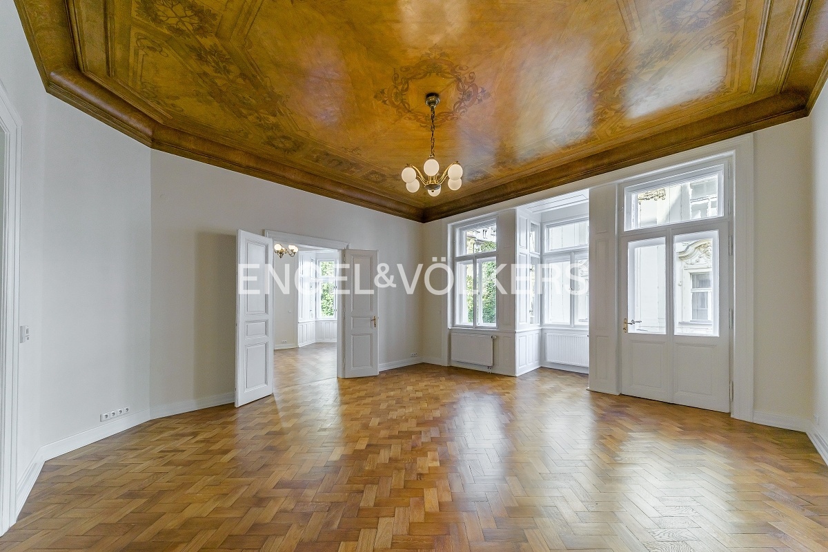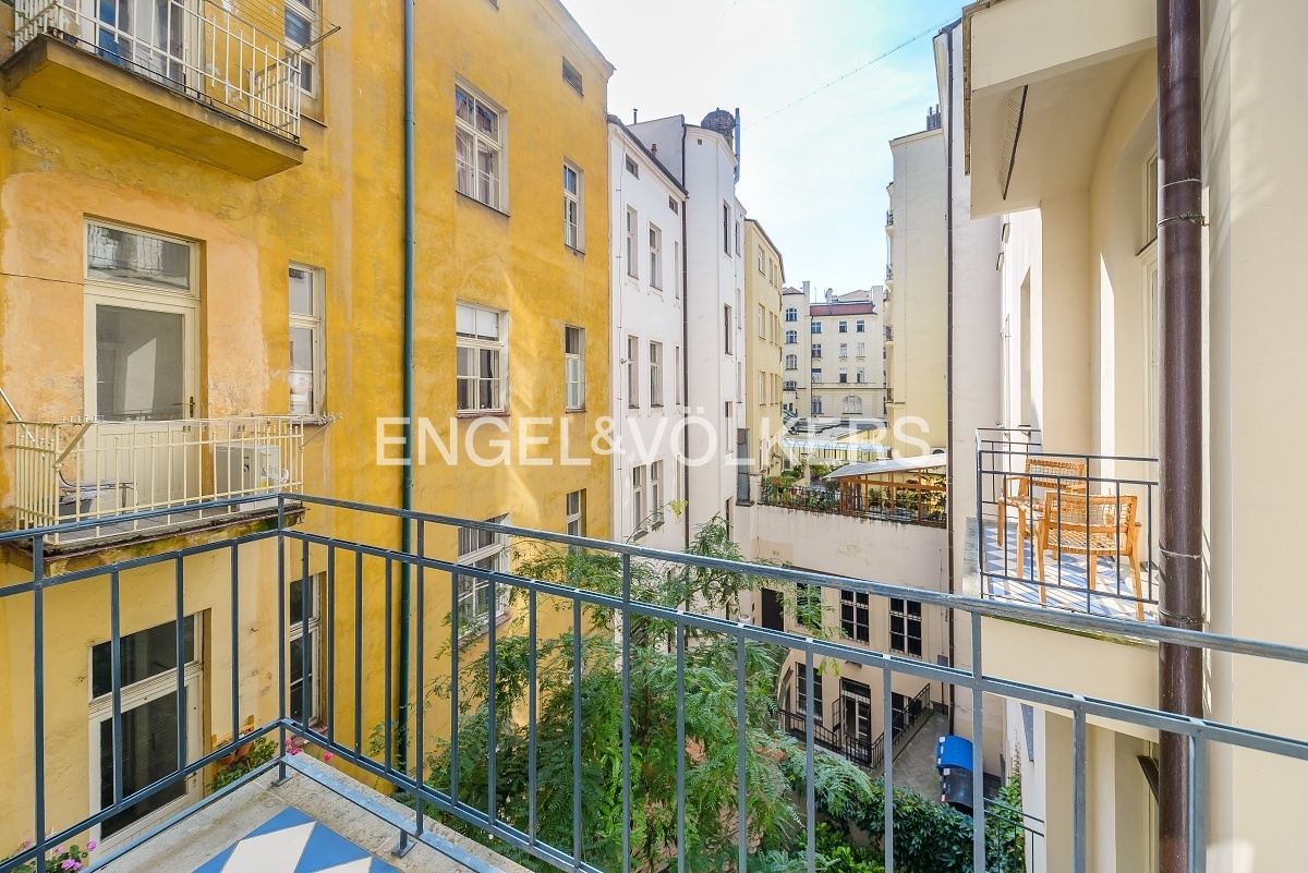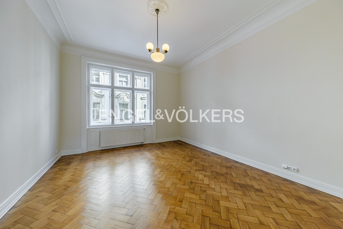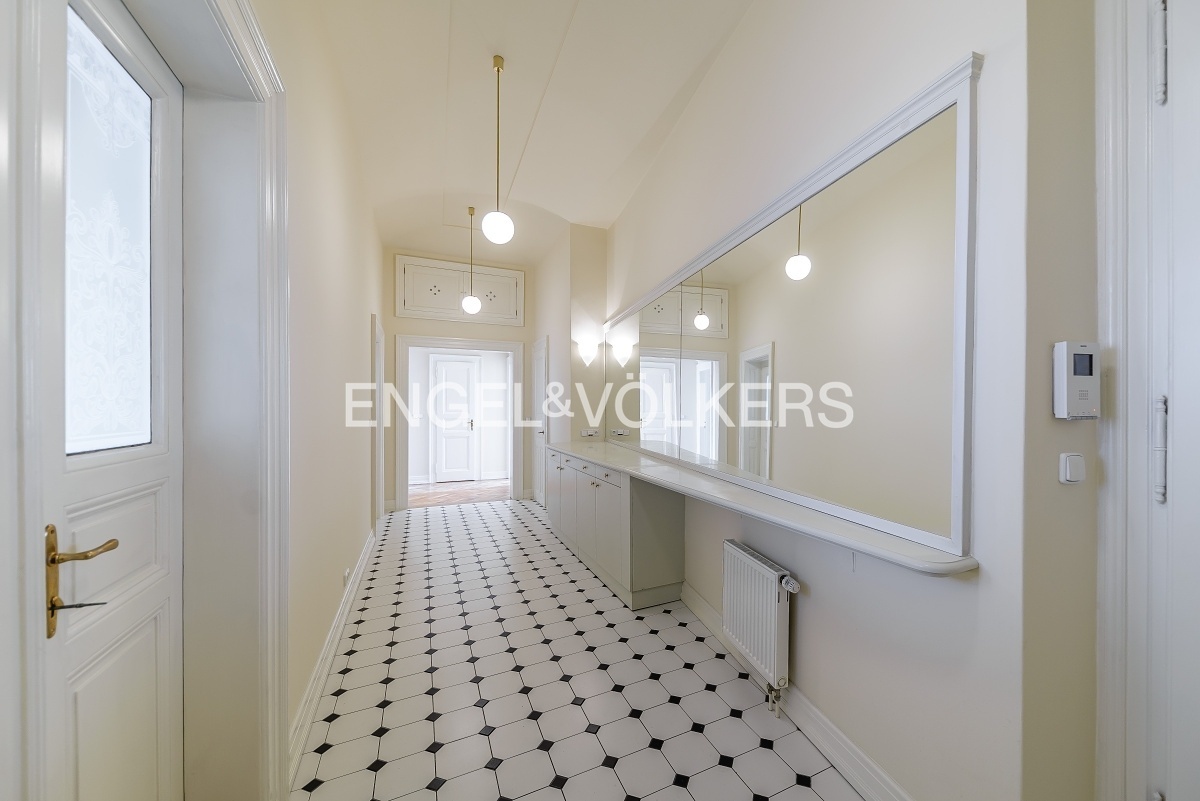 Prostorný byt na velmi prestižní adrese se nachází ve 3. nadzemním podlaží historického secesního domu s 24 hodinovou recepcí a výtahem. Byt je po kompletní rekonstrukci, při které se dbalo na zachování původních prvků jako jsou dřevěné parkety, štuky a dřevěný strop v obývacím pokoji. Byt nabízí celkem tři ložnice, prostorný obývací pokoj, jídelnu s plně vybavenou kuchyní se všemi spotřebiči, koupelnu a oddělenou toaletu. K dispozici je připojení k optickému internetu PE3ny net, 24h ostraha v ceně nájmu.