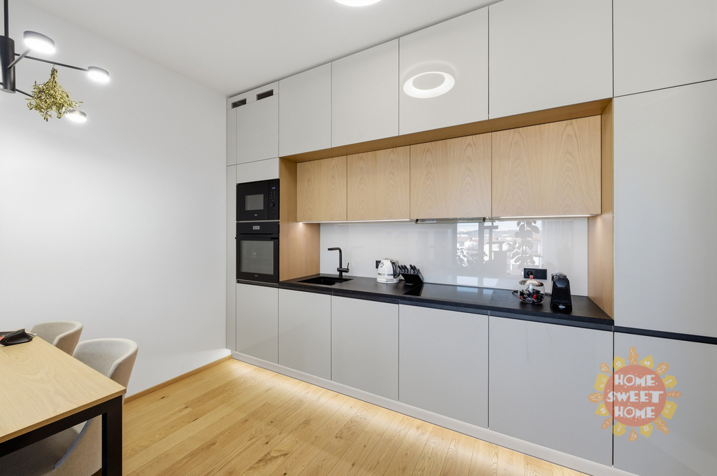 Byt se prodává včetně vybavení na míru v pořizovací hodnotě 1.270.000 Kč (již součástí kupní ceny). Díky nájemní smlouvě je byt zajímavou investicí - aktuální nájem je 42.000 Kč/měsíc + poplatky. V případě zájmu o koupi pro vlastní bydlení je možné smlouvu vypovědět.