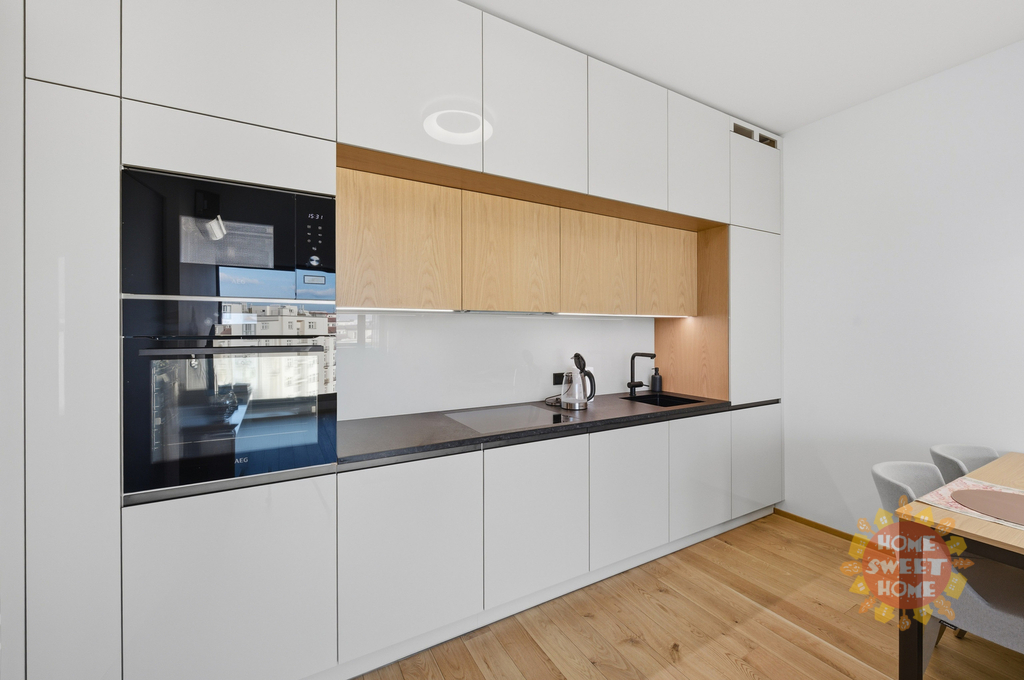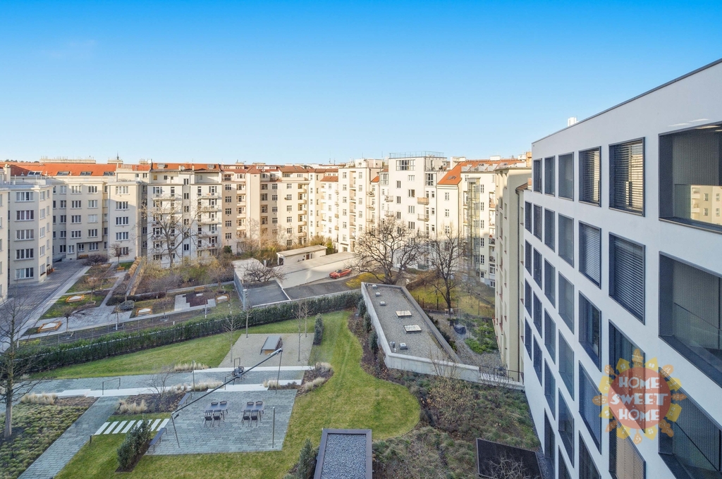 Victoria Palace - Dejvice, moderní designový byt 2+kk k prodeji, terasa, parkování, zařízený