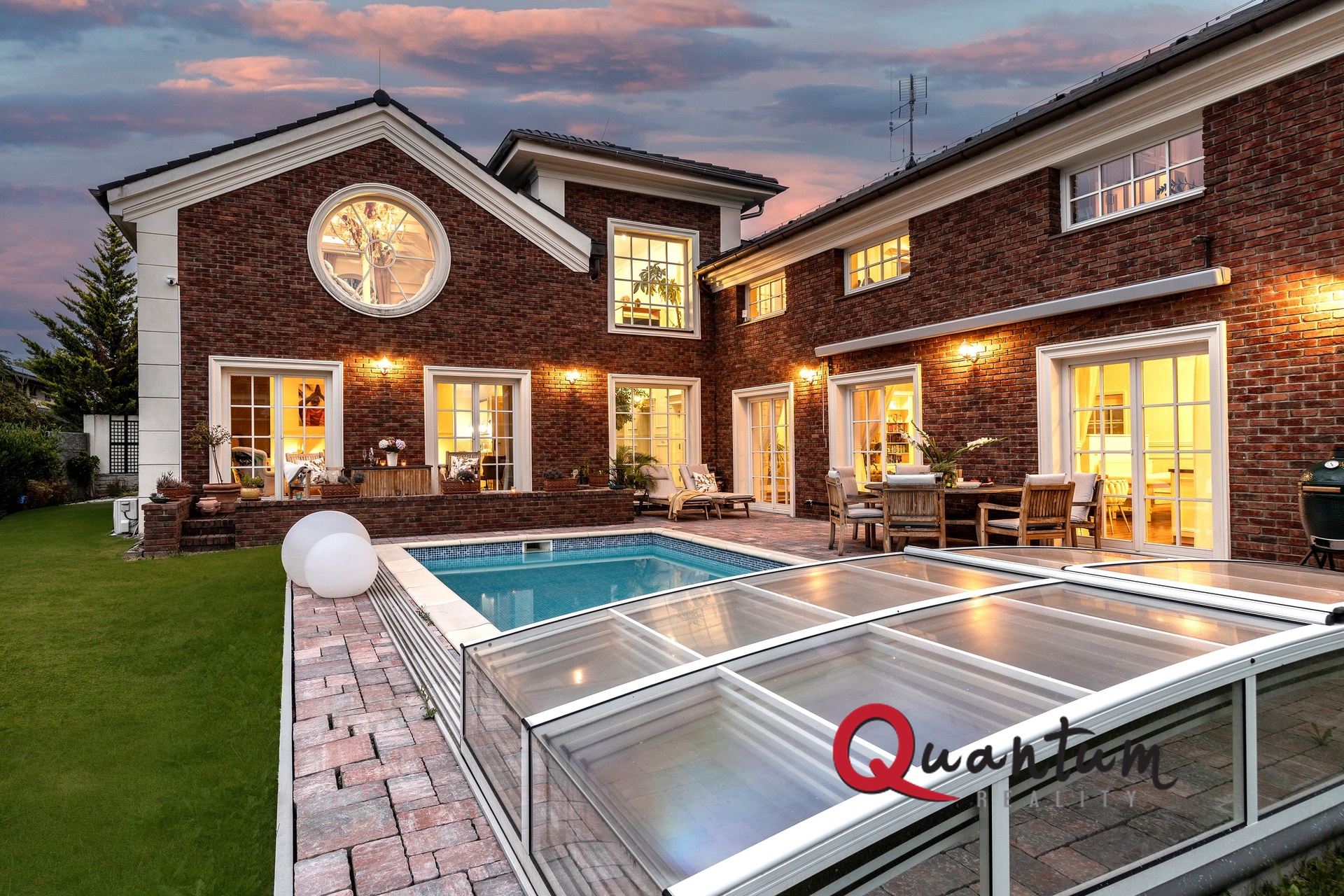 Kvalitní materiály a stylové provedení – fasáda v anglickém stylu, elegantní detaily a propracovaný interiér, který zachovává styl domu.
