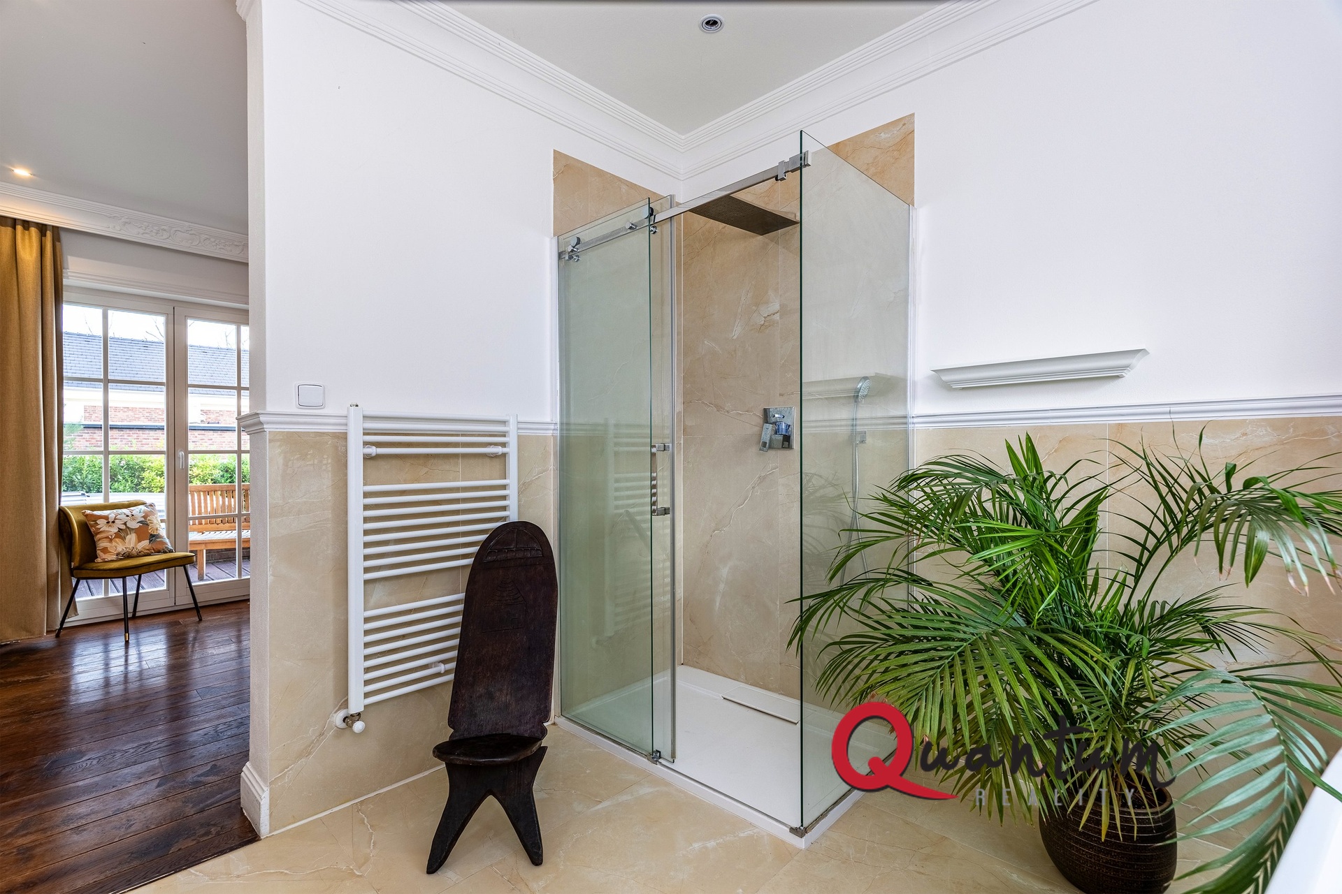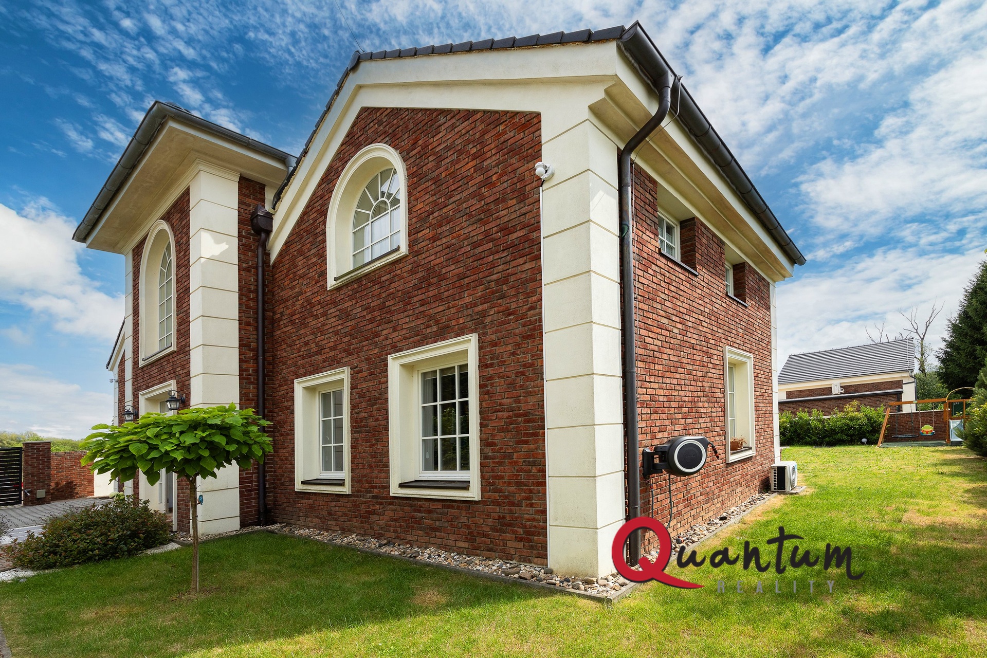 Kvalitní materiály a stylové provedení – fasáda v anglickém stylu, elegantní detaily a propracovaný interiér, který zachovává styl domu.