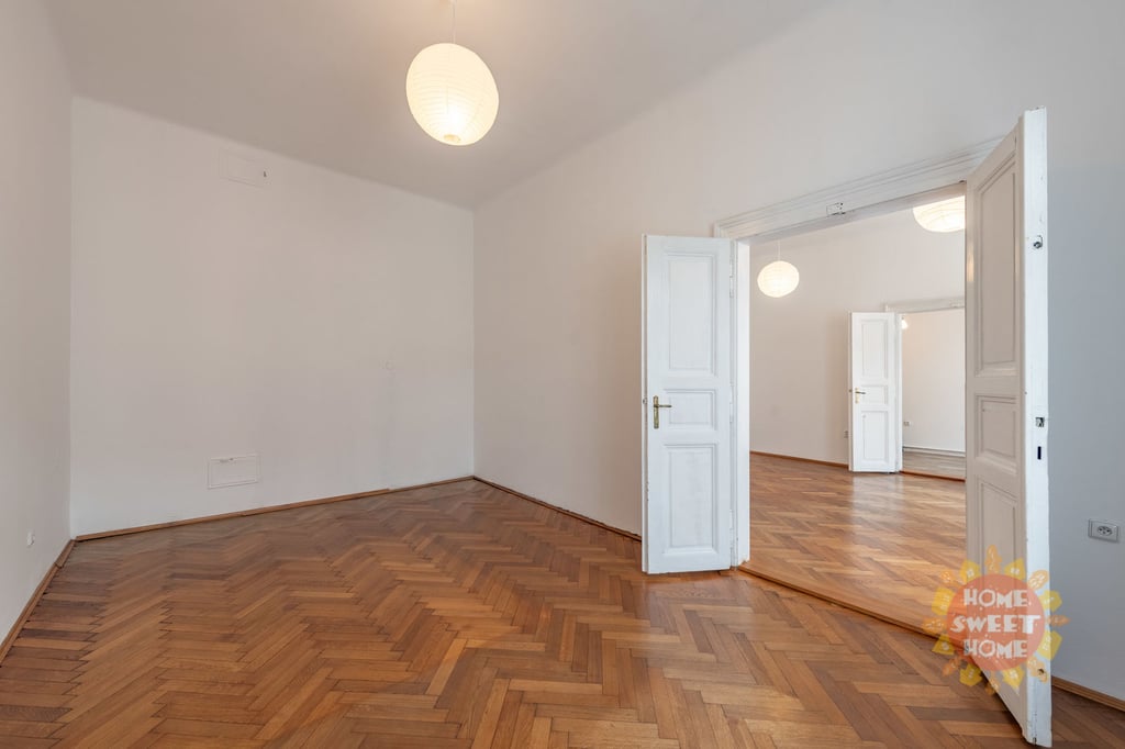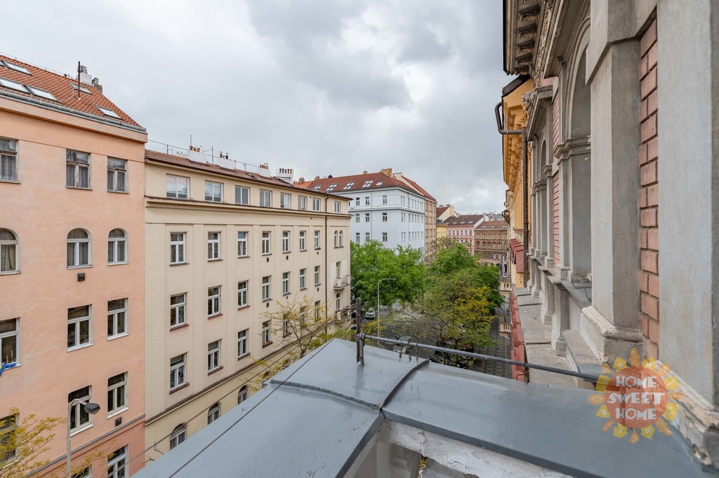 Vinohrady, slunný byt 3+1 k pronájmu (80m2), nezařízený, balkón, ulice Budečská