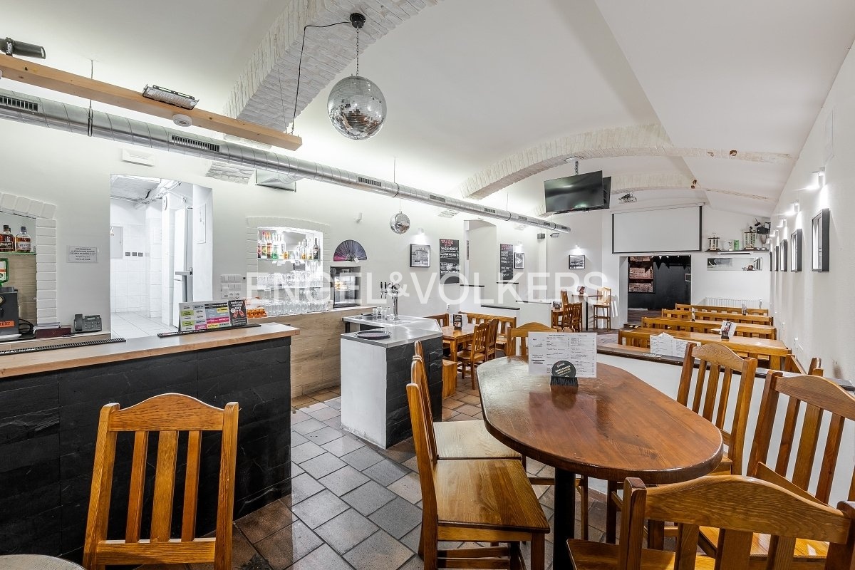 K pronájmu nabízíme vybavenou a zrekonstruovanou hospodu ve Vršovicích v Moskevské ulici v bezprostřední blízkosti tramvajové zastávky Ruská. Prostory kolaudované jako restaurace se nachází v prvním podzemním podlaží bytového domu, vstup pro zákazníky je přímo z ulice, zásobovací vstup přes budovu je zabězpečen mříží.