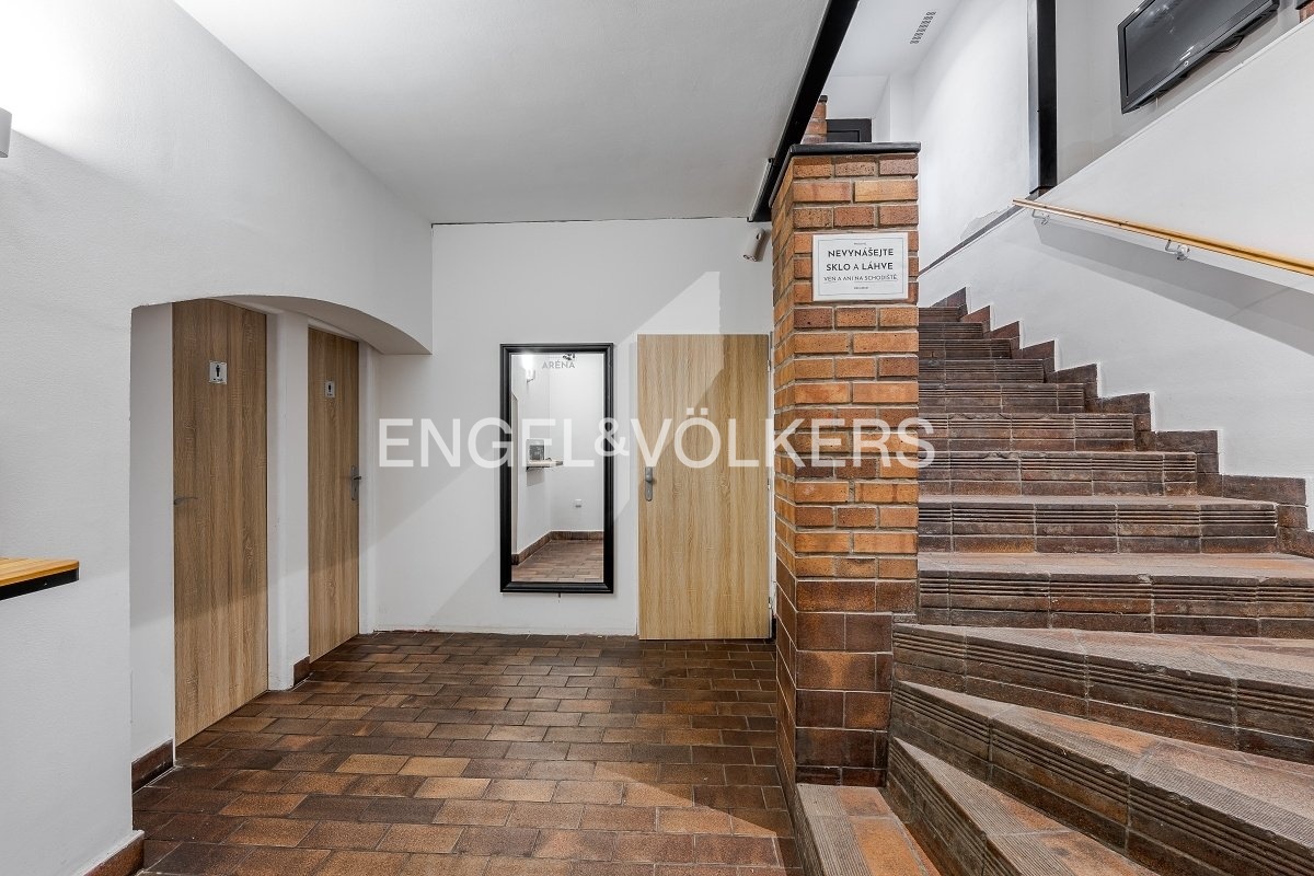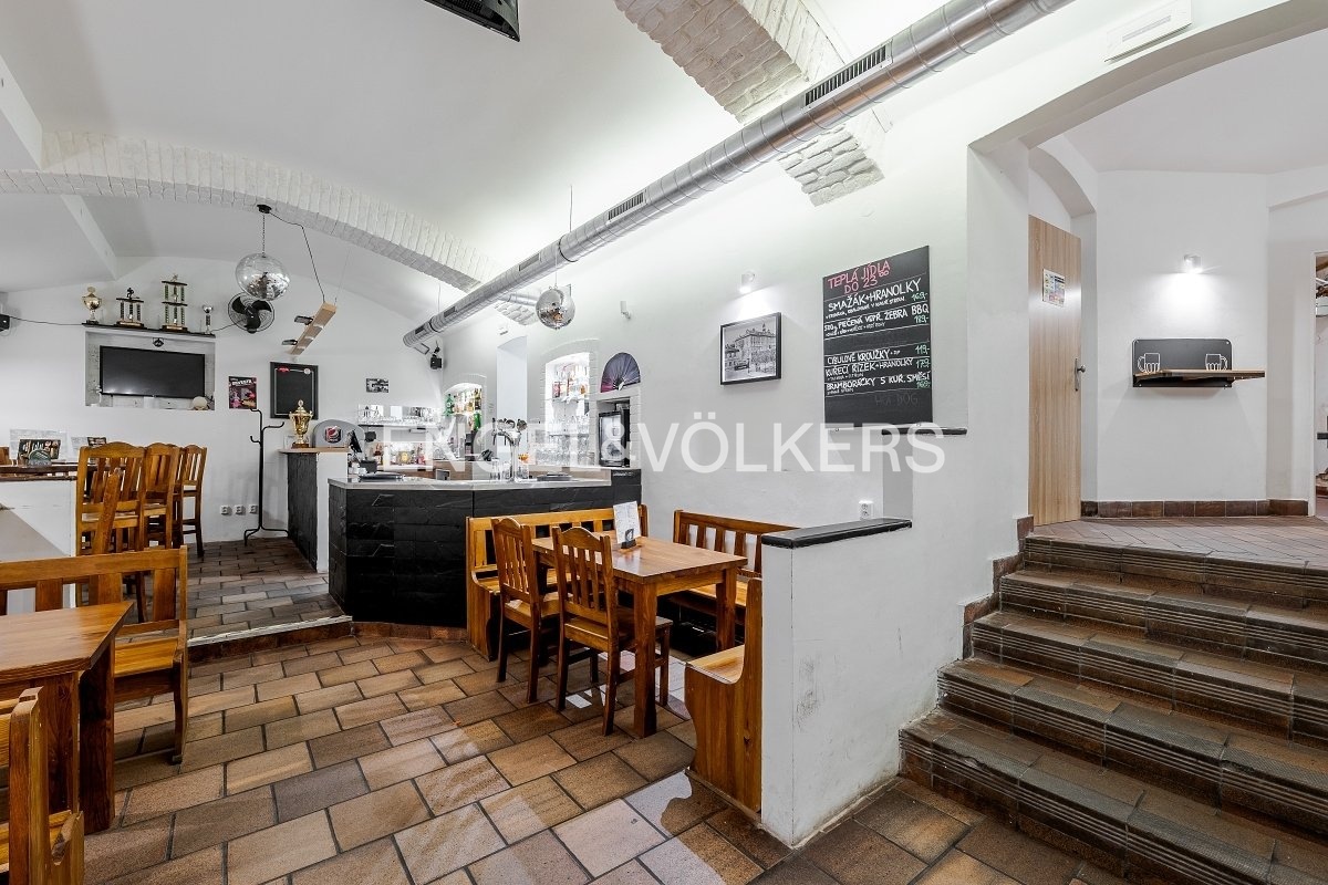 Prostory se dávají do pronájmu s veškerým vybavením, po rekonstrukci, s odstupným. Vstup je přes schodiště dolů, přes vstupní halu, ve které se nachází pánské a dámské sociální zařízení, po pravé straně je chodba do skladových prostor a salonku. Po levé straně je vstup do jídelní místnosti s barem a výčepem, v zadní části prostor se nachází taneční parket s pultem pro DJe. Část s tanečním parketem je zvukově izolována a nad prostorem v prvním nadzemním podlaží se nachází kanceláře, proto provoz nebude rušit obyvatele domu.
