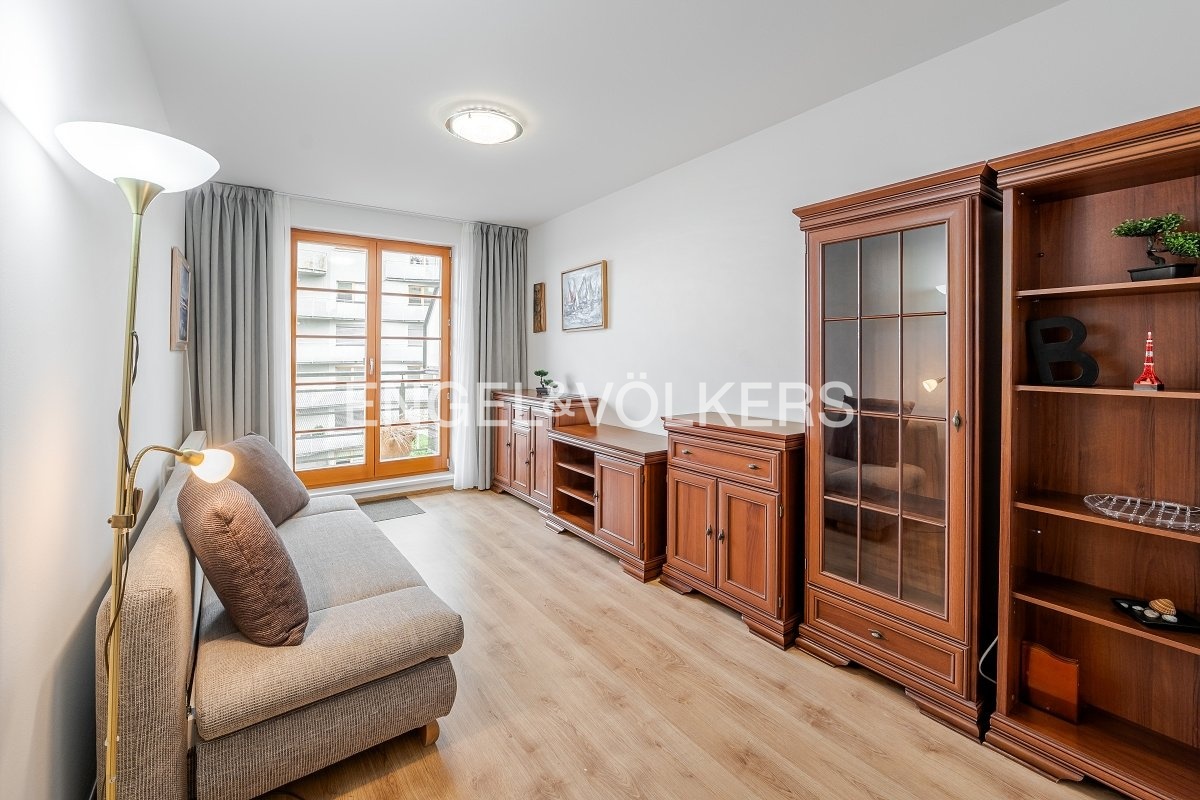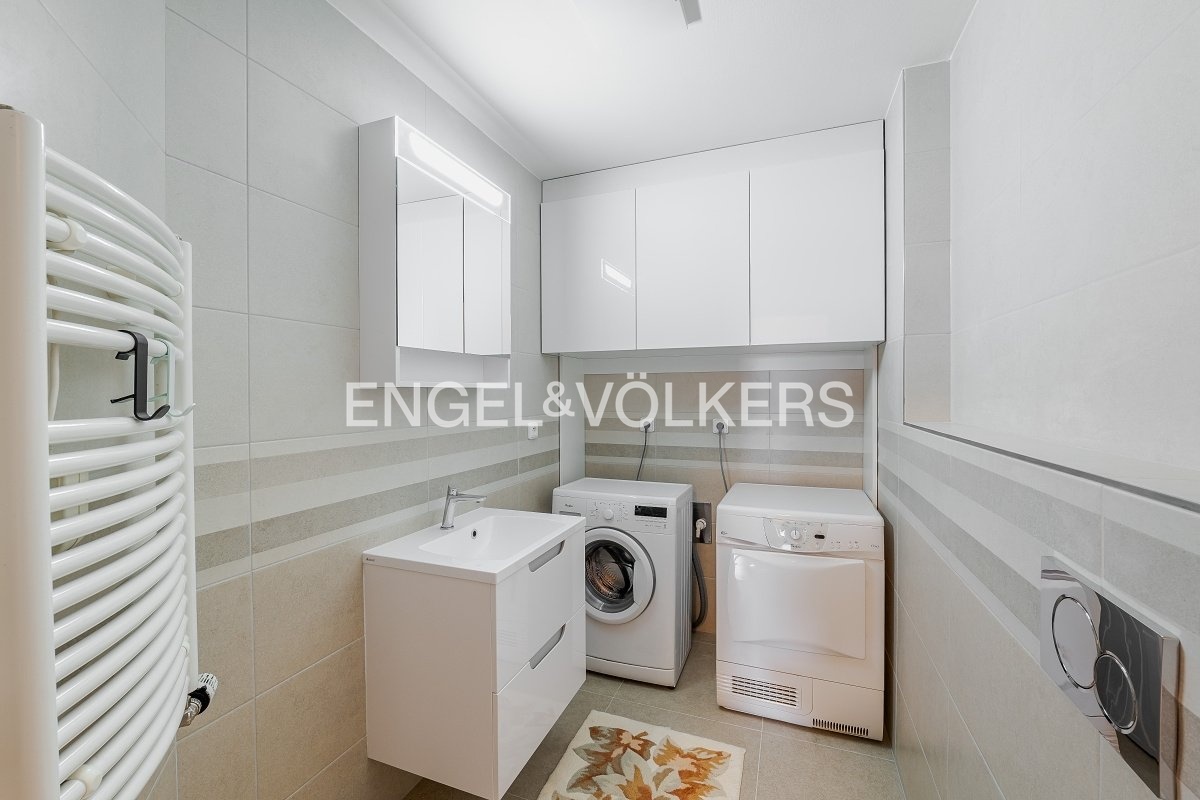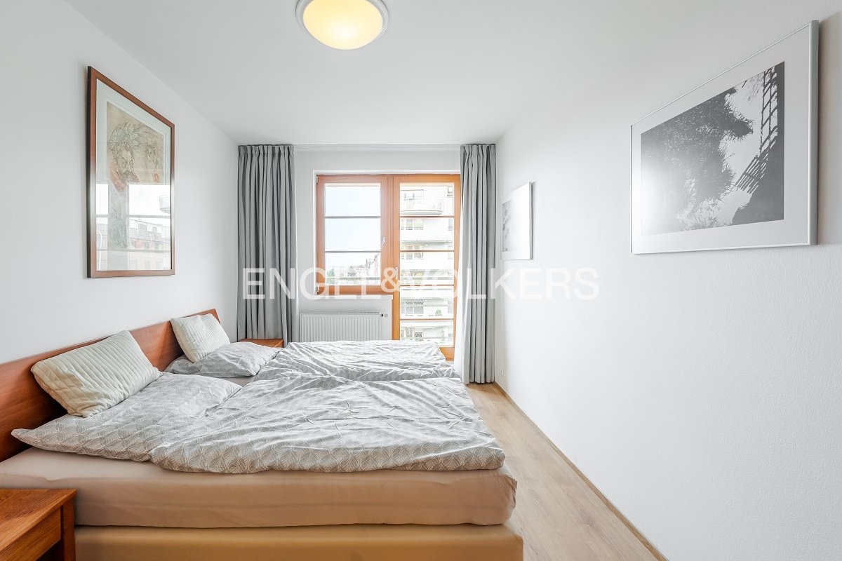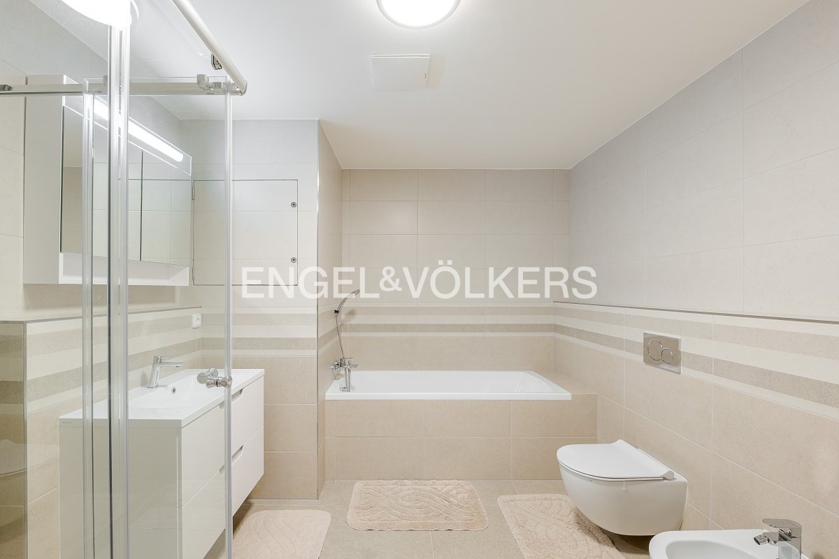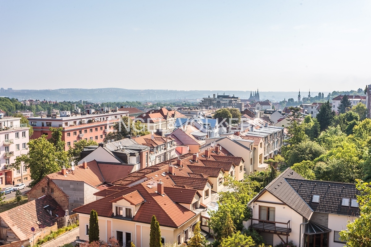 K okamžitému pronájmu je připravený kompletně zařízený byt s dispozicí 3+kk v 6. nadzemním podlaží bytového domu s terasou a výhledem na Pražský hrad. V bytové jednotce najdete dvě neprůchozí ložnice, koupelnu se sprchovým koutem a vanou, samostatnou toaletu s bidetem, pračkou a sušičkou. Kuchyň je kompletně vybavená indukční varnou deskou, horkovzdušnou troubou, mikrovlnnou troubou, myčkou a lednicí. K bytu náleží prostorná terasa s výhledem na centrum Prahy a přístupná z obývacího pokoje i ložnice. Dostatek úložného prostoru zajišťují velké vestavěné skříně a úložná komora v bytě. V ceně nájmu je jedno parkovací stání v podzemních garážích a sklep. V domě je recepce 24/7. Byt se nachází v atraktivní lokalitě městské části Břevnov a v blízkosti parku Ladronka.