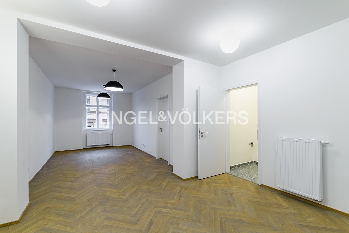 K pronájmu od 1. 10. 2025 je připravený výborně řešený byt s dispozicí 2+kk v srdci Anděla.
