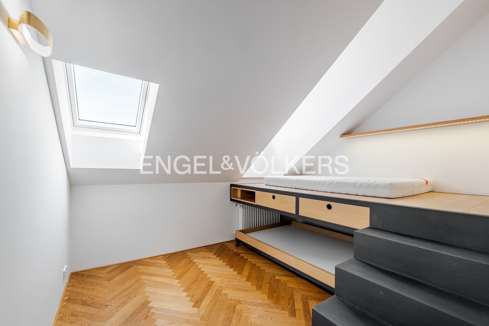 K dlouhodobému pronájmu je připraven výjimečný mezonetový byt s dispozicí 5+kk a celkovou plochou 200 m², situovaný v 5. nadzemním podlaží domu s výtahem v prestižní lokalitě Praha 1 - Hradčany.