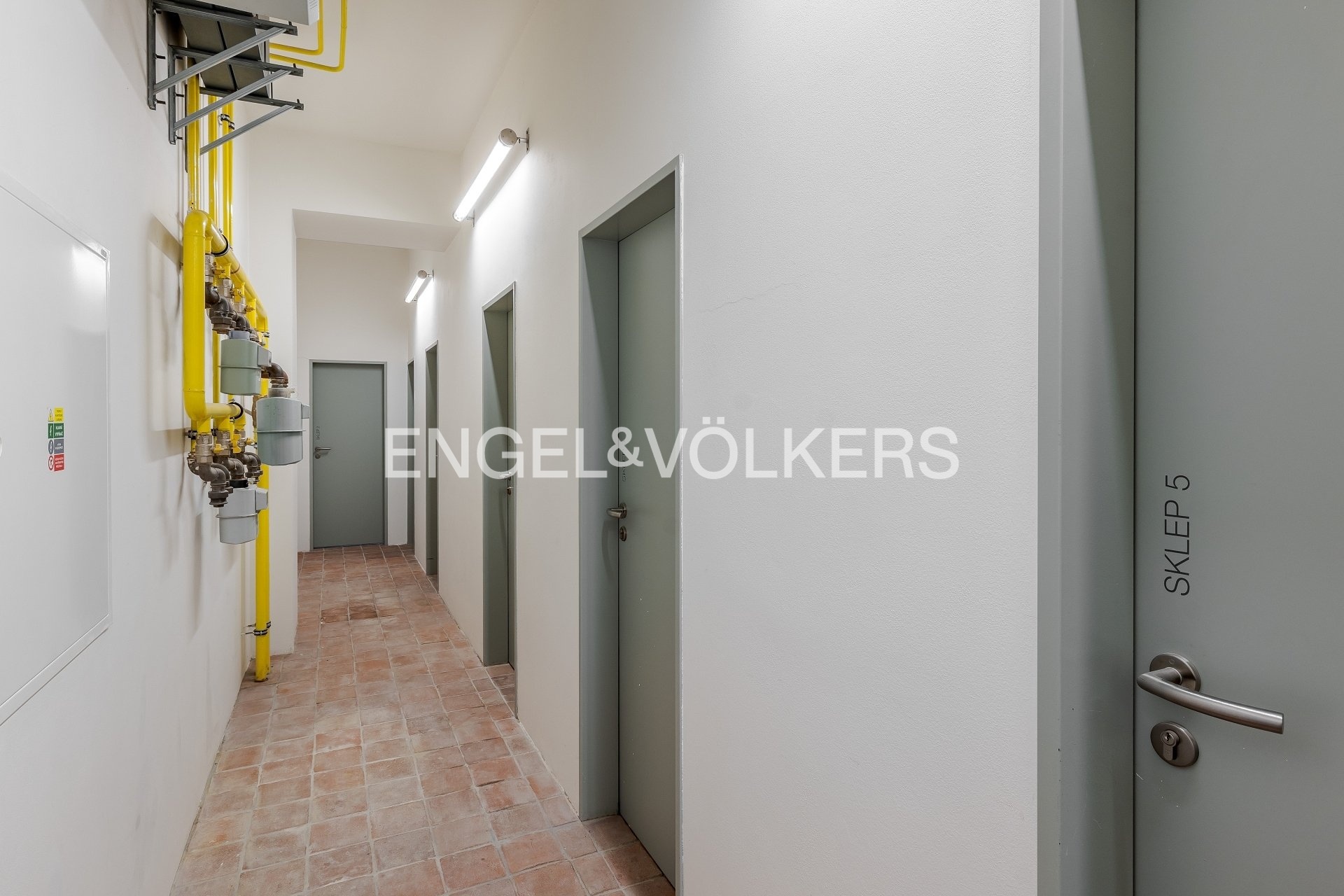 Součástí bytu je také terasa o velikosti 9,5 m², sklep a dvě parkovací místa v garáži se zakladačovým systémem. Byt je vybaven klimatizací a střešní okna mají elektrické ovládání. Interiér působí elegantně díky dřevěným parketám a stylovým tapetám. Bezpečnost bytu je zajištěna alarmem.