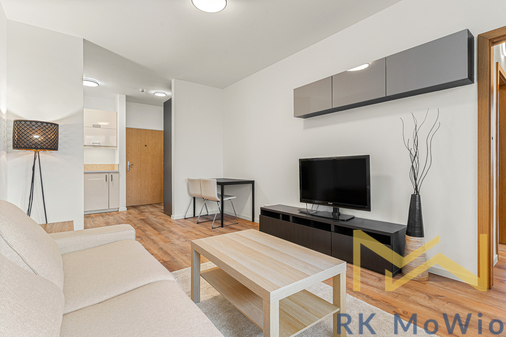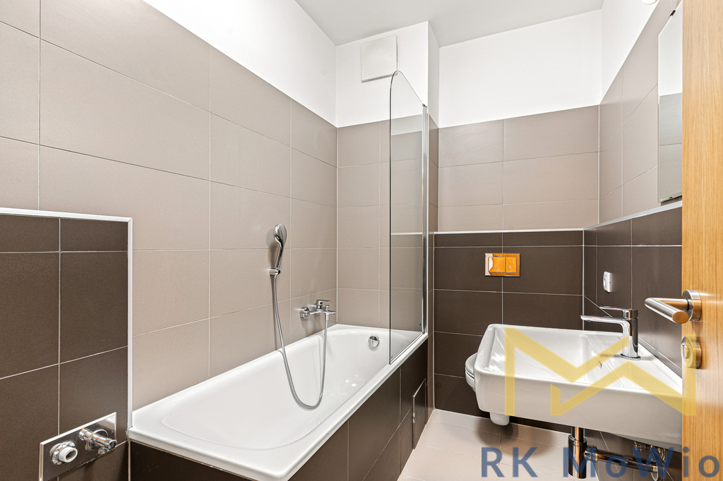 Půdorys bytové jednotky disponuje vstupní chodbou, obývacím pokojem s kuchyňským kotem a jídelní částí se vstupem na terasu, ložnicí, také se vstupem na terasu, 1 koupelnou (s vanou, umyvadlem a toaletou). Vybavení bytu: kuchyňská linka (včetně lednice s mrazákem, sklokeramické varné desky, digestoře, myčky a elektrické trouby), vestavěné skříně, pračka a sušička, příprava pro vysokorychlostní internet. Možnost pronajmout parkovací stání za extra příplatek 3.000,- Kč/měsíc.