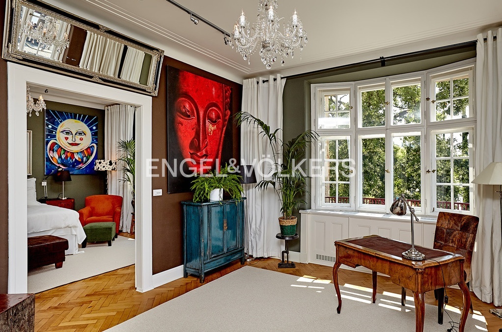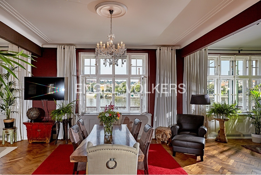 Nabízíme Vám k okamžitému pronájmu luxusní neopakovatelný apartmán s výhledem na Vltavu s dispozicí 4+kk v druhém nadzemním podlaží činžovního domu v prestižní části Prahy na Rašínově nábřeží. V domě byl kladen důraz na zachování původních prvků domu i bytu.