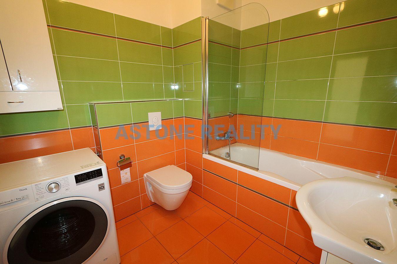 Exkluzivně Vám nabízíme k pronájmu krásný byt s dispozicí 2+kk s předzahrádkou v Praze 9, Vysočanech, v klidné ulici Sousedíkova. Prostorný byt o velikosti 60 m2 s předzahrádkou 90 m2 se nachází v prvním patře cihlového domu s výtahem. Je nabízen částečně zařízený, kuchyňská linka je vybavena troubou se sklokeramickou deskou, lednicí s mrazákem, digestoří a mikrovlnnou troubou, pokoje jsou bez nábytku, okna jsou opatřena venkovními elektrickými žaluziemi. V koupelně se nachází vana, toaleta a pračka se sušičkou, další toaleta je zvlášť. V předsíni jsou praktické vestavěné skříně. K bytu náleží velký zděný sklep 4,2 m2 a garážové stání v přízemí domu. Výborná poloha, 3 min pěšky na tramvaj, odtud 3 stanice na metro B Hloubětín nebo 5 stanic na metro Českomoravská. Přímo u domu vede cyklostezka, v bezprostřední vzdálenosti O2 Arena, Galerie Fénix, OC Nová Harfa, nedaleko park Rokytka. Volné ihned k nastěhování, majitel preferuje nájemce bez zvířat, případně jeden malý pejsek není překážkou.