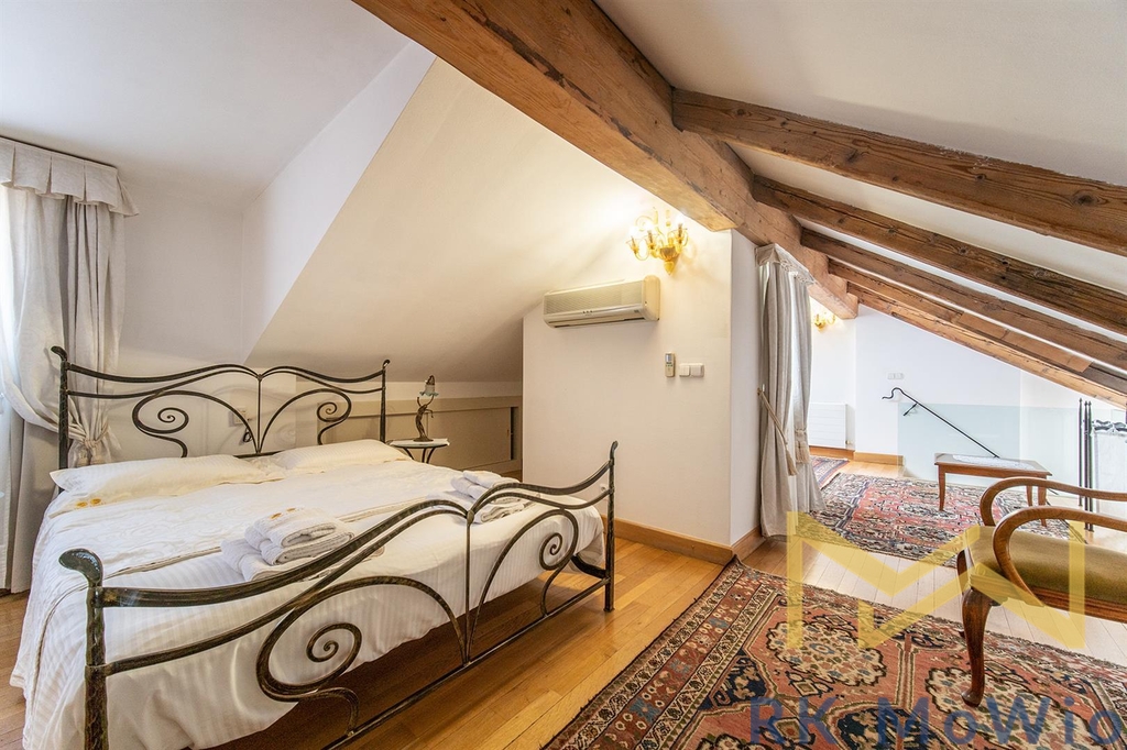 Na pronájem nabízíme nadstandartní, mezonetový zařízený byt č. 10 o dispozici 3+kk s podlahovou plochou 126,8 m2, situovaný v podkroví v 5. patře (6. nadzemní podlaží) budovy s výtahem, v ulici Truhlářská na Praze 1 - Nové Město.