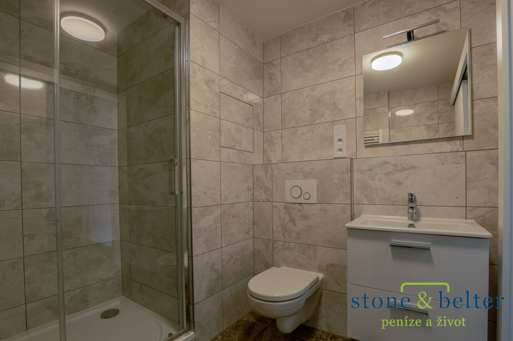 Byt nabízí kvalitní moderní standard – vinylové podlahy, dlažbu, izolační trojskla, elektricky ovládané předokenní rolety a přípravu na vysokorychlostní internet i TV.