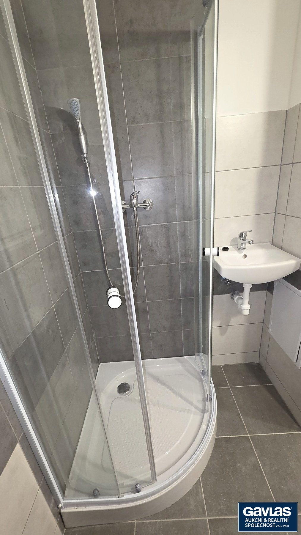 Kuchyňská linka je vybavena dřezem, přenosným vařičem se 2 plotýnkami a digestoří. Koupelna je zařízena sprchou, umyvadlem, kombi WC, místem pro připojení pračky a elektrickým bojlerem. Domácí telefon.