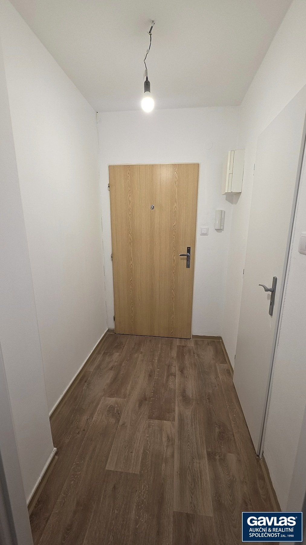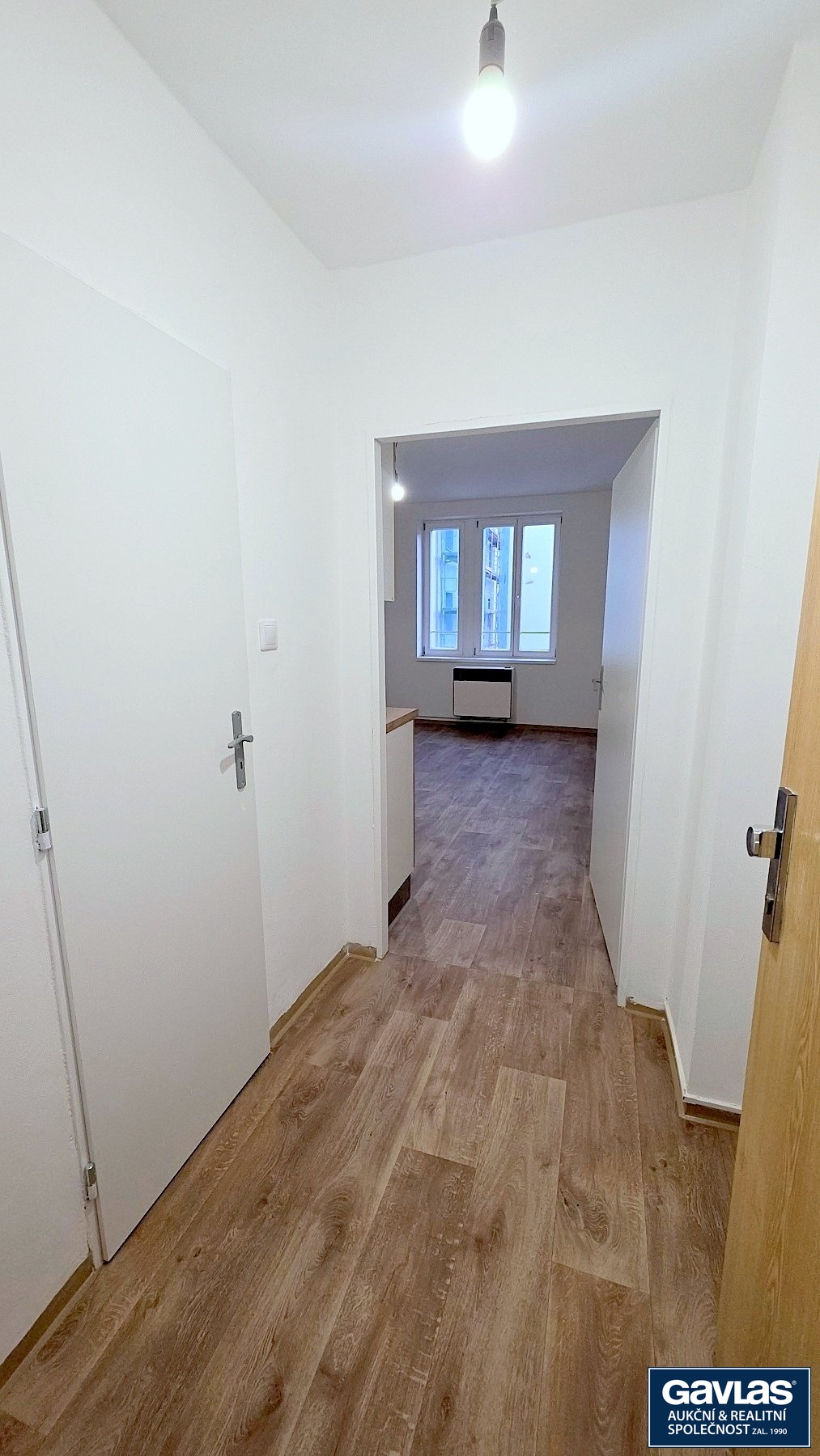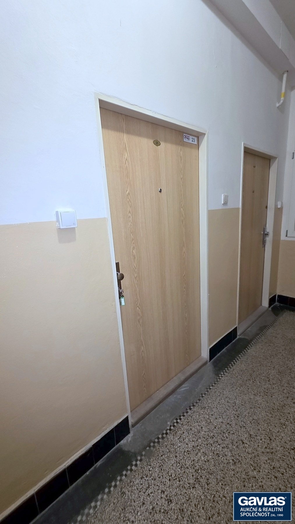 Dispozice: z chodby domu se vchází předsíně, ze které jsou vstupy do koupelny s WC a obytné místnosti. Okno je orientováno na východ do vnitrobloku. K bytu náleží užívání nové plechové sklepní kóje v 1. PP domu.