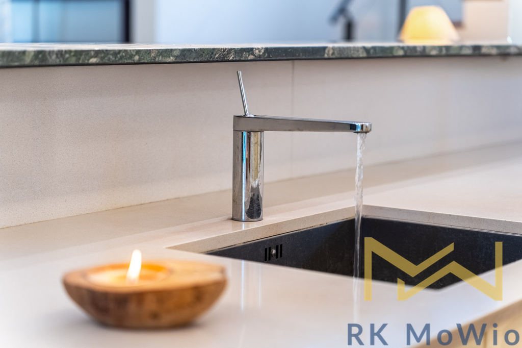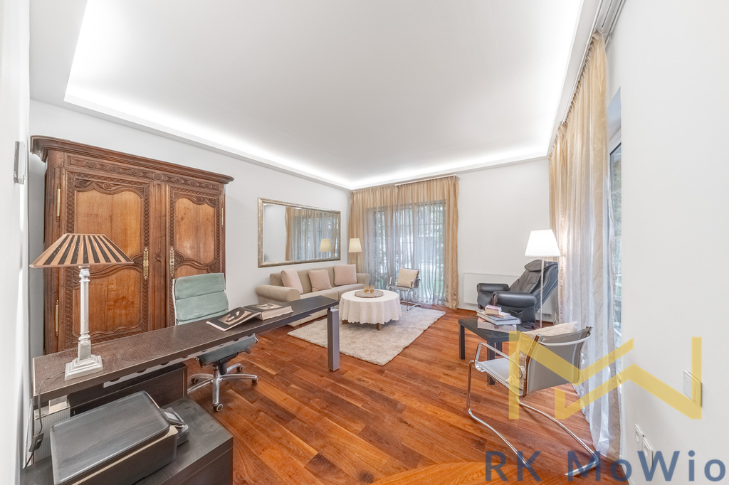 Přízemí domu tvoří reprezentativní vstupní hala, světlý obývací pokoj s jídelnou a přímým vstupem na terasu a do zahrady – ideální místo pro rodinné večeře i letní posezení. Na obývací část navazuje designová kuchyně se dvěma zónami – servírovací/cateringovou a varnou, vybavenou moderními spotřebiči a dostatkem úložného prostoru. Dále je zde pracovna se samostatným vstupem do domu a koupelna s vanou a toaletou.