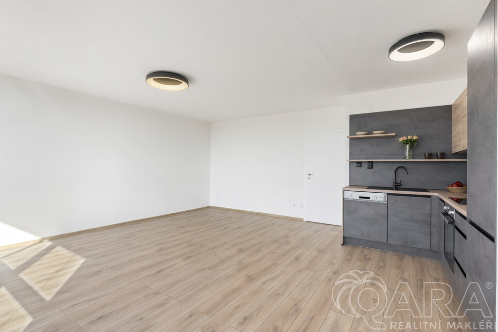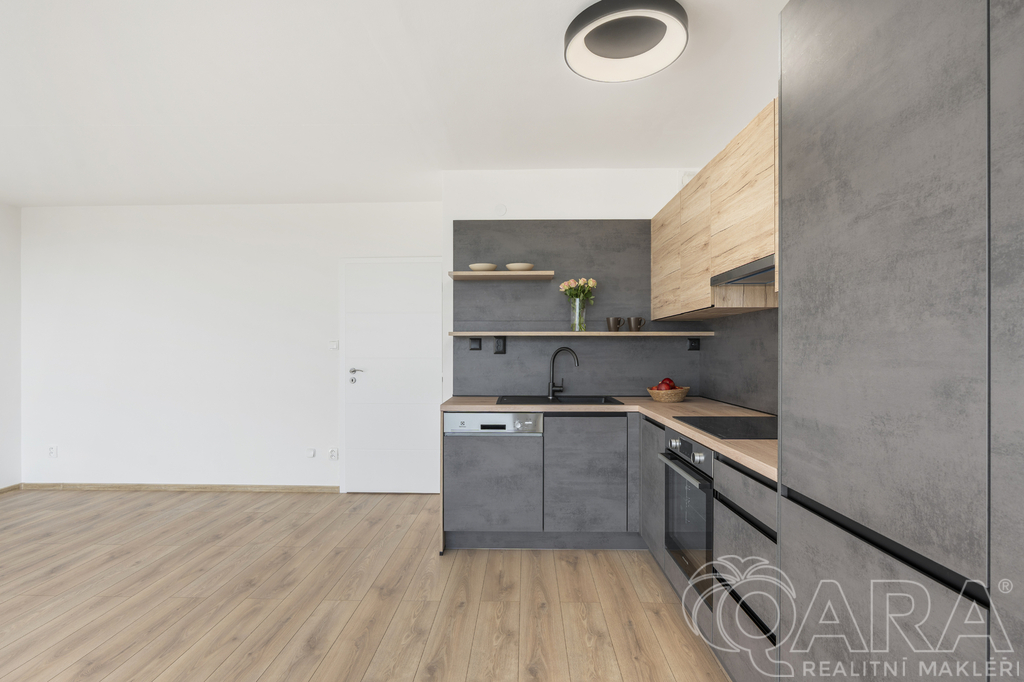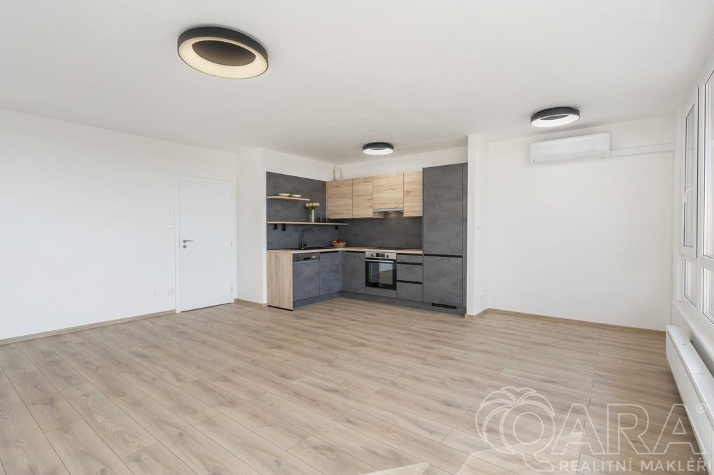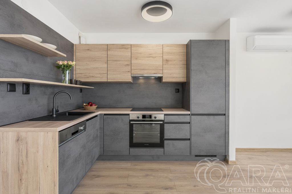 Interiér prošel kompletní rekonstrukcí v roce 2025. Kvalitní kuchyňská linka je vybavená vestavnými spotřebiči (indukční deska, trouba, myčka, digestoř, lednice s mrazákem), koupelna má moderní design se sprchovým koutem, toaleta je oddělená.