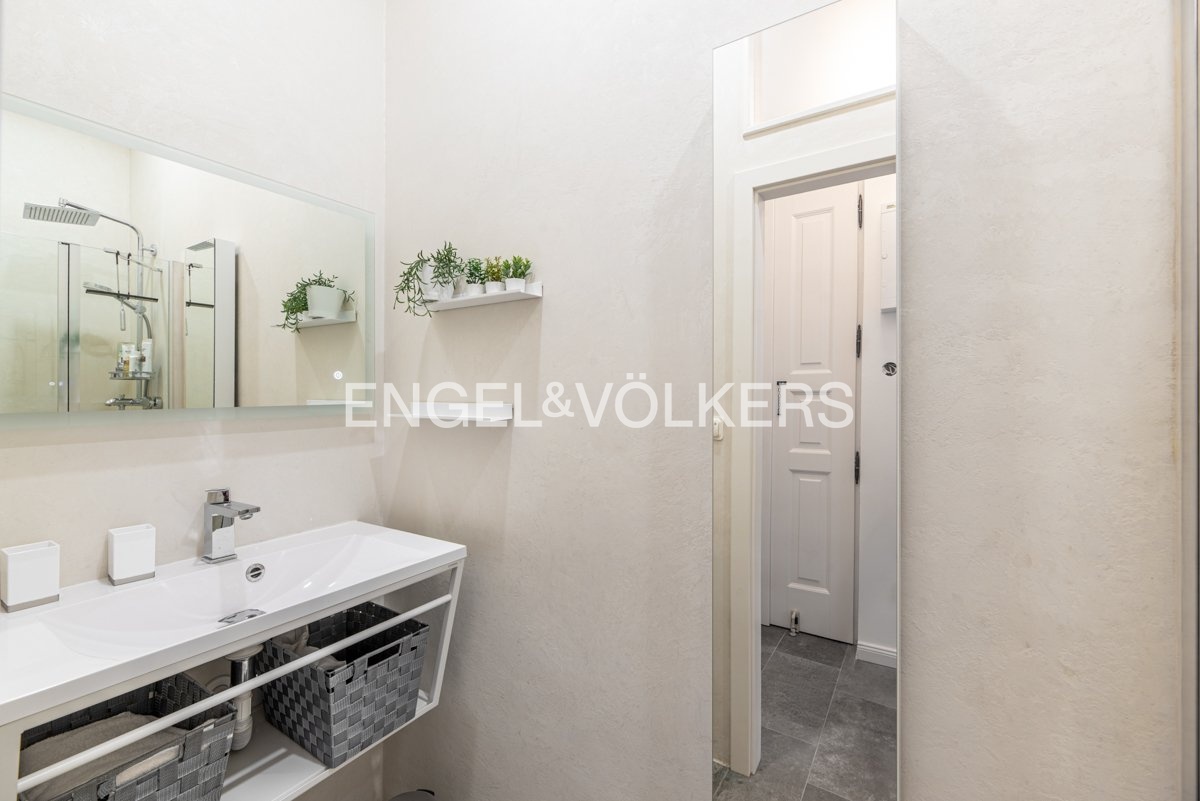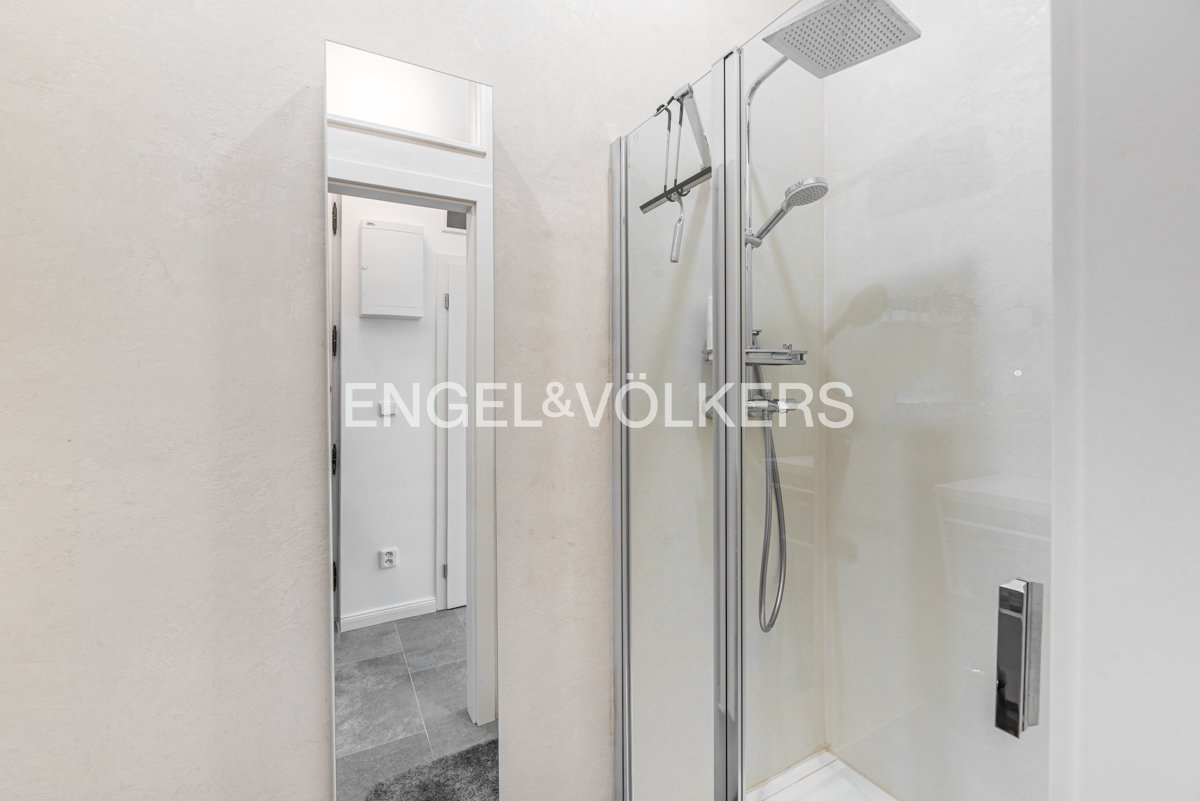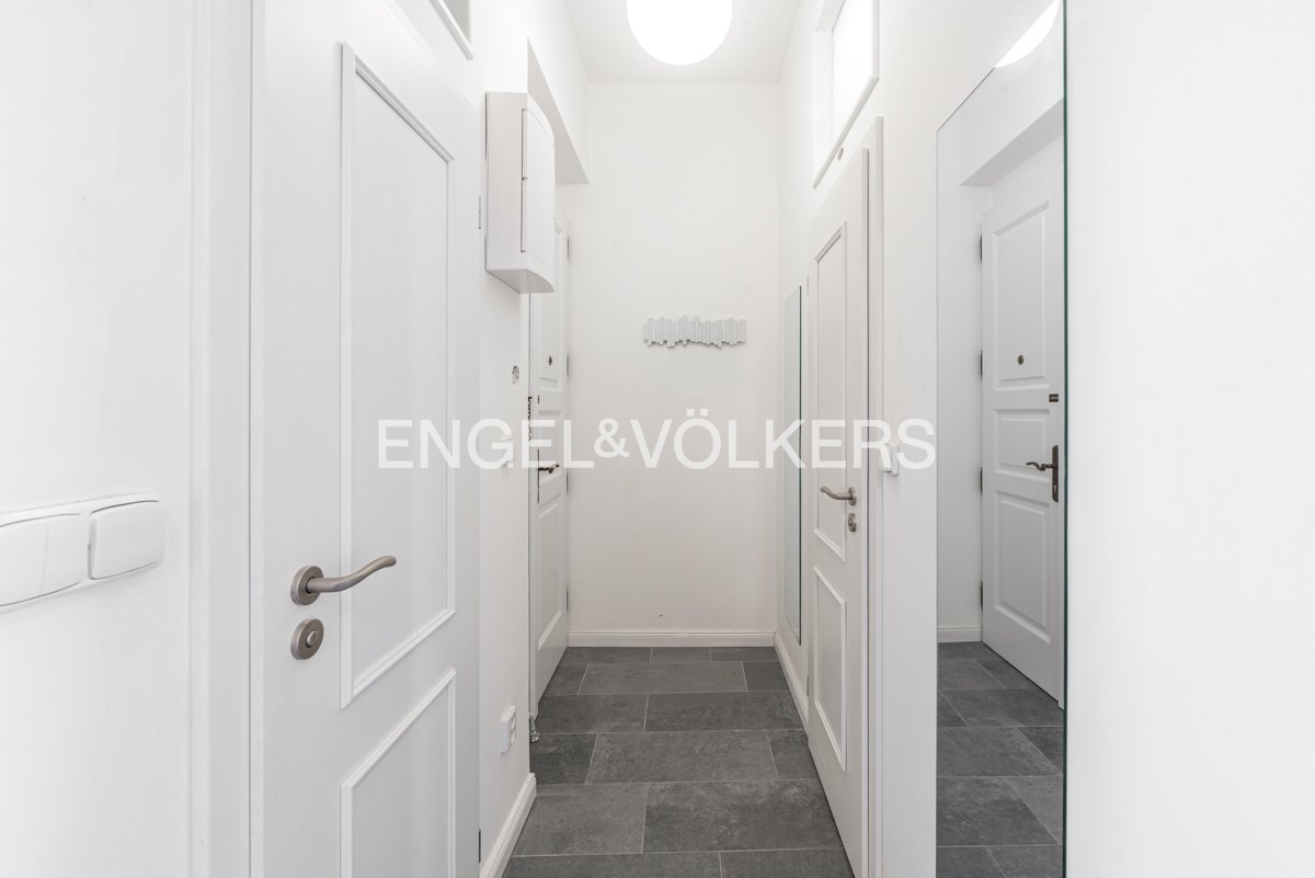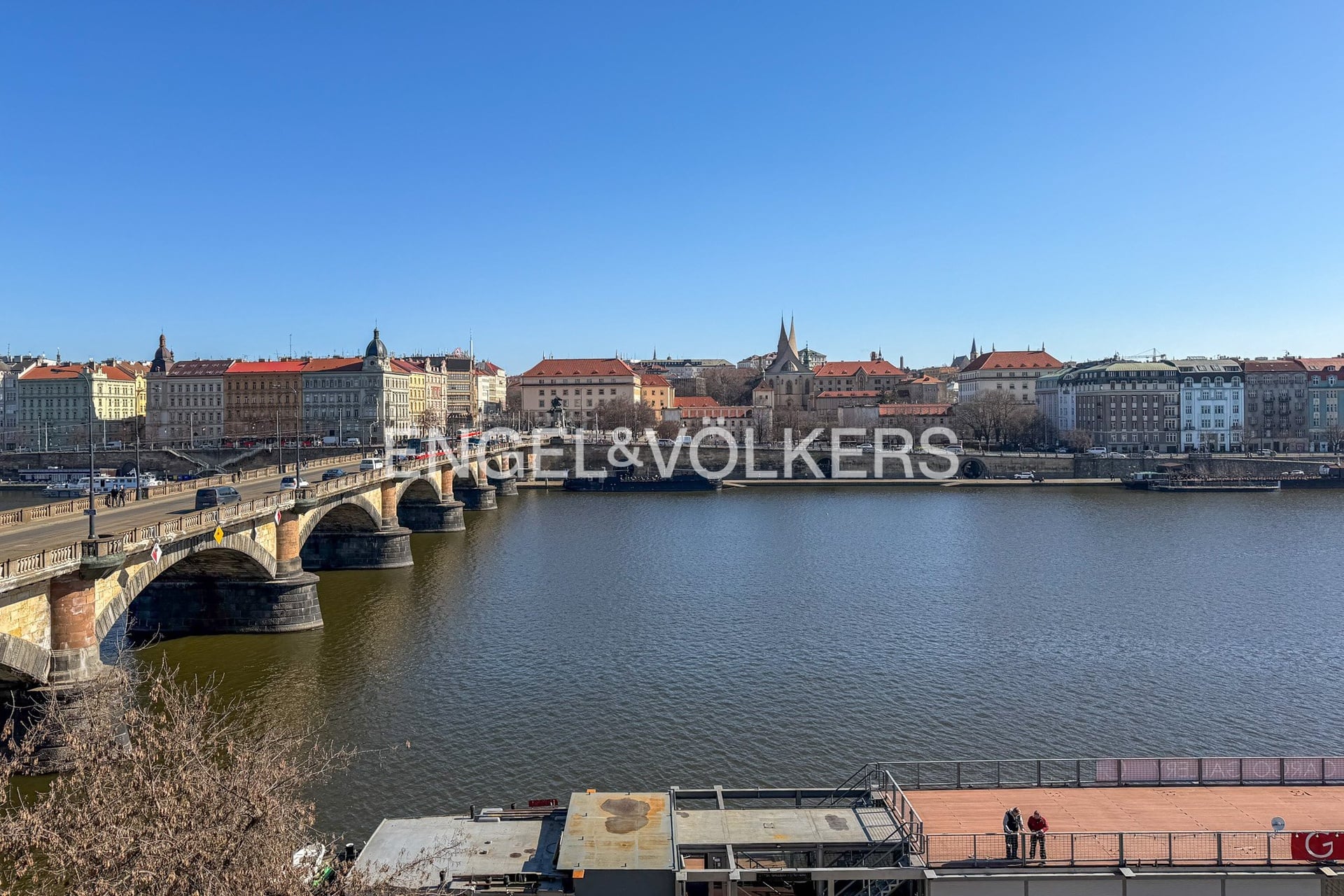 Byt disponuje kompletně vybavenou kuchyňskou linkou, obývacím pokojem s nádherným výhledem na Vltavu a Tančící dům, dále ložnicí, která je orientována do klidného vnitrobloku, koupelnou se sprchou, oddělenou toaletou a vstupní chodbou.