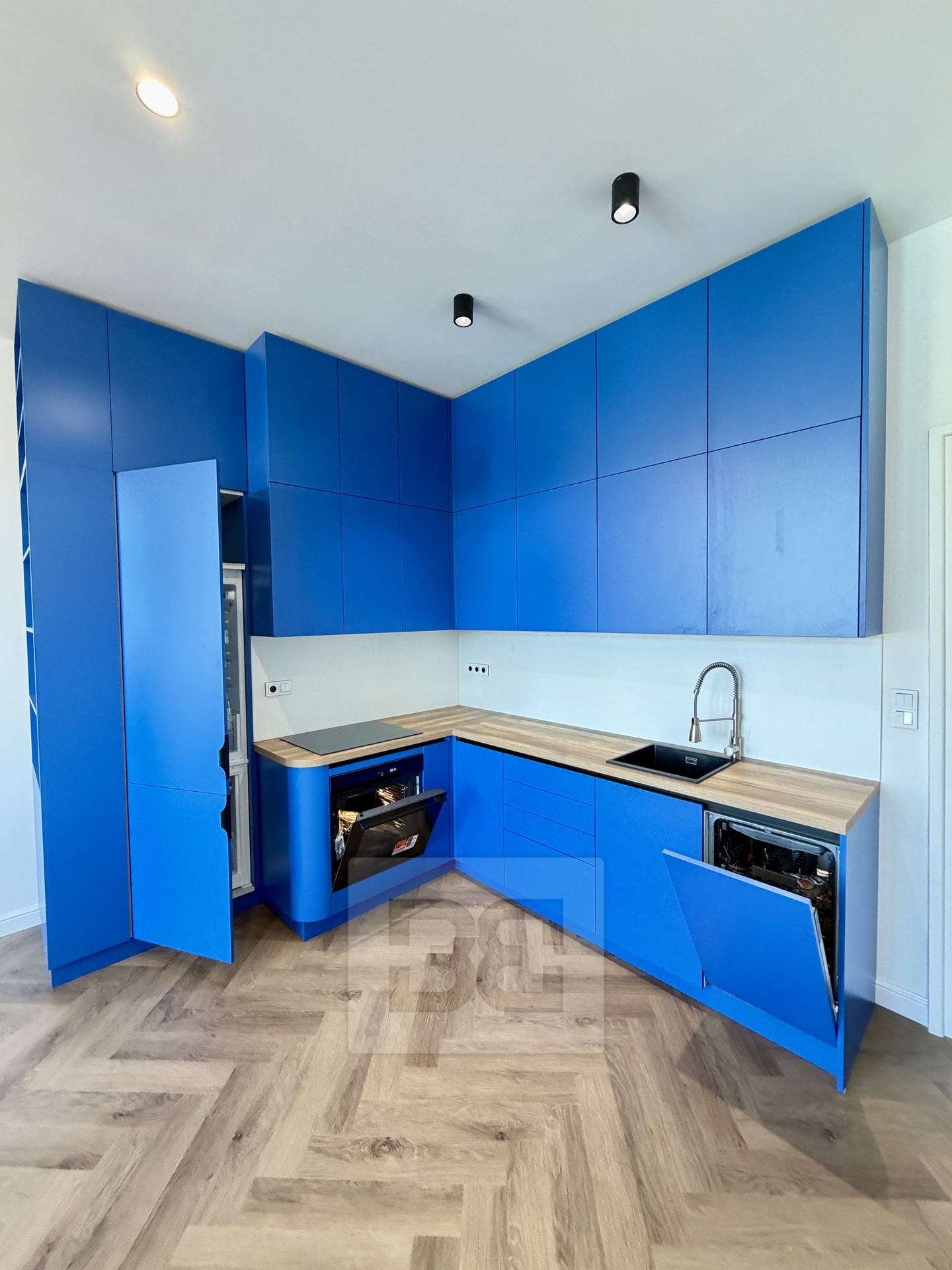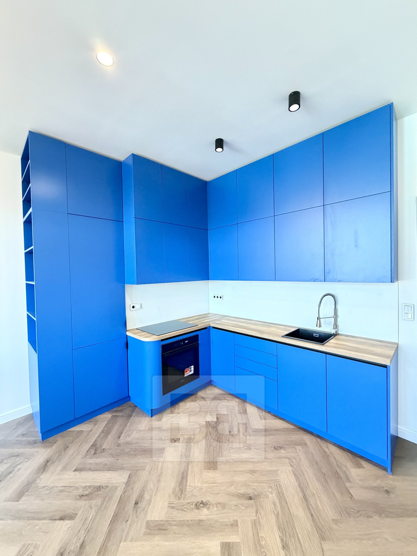 Kuchyňská linka je vybavena veškerými vestavěnými spotřebiči – lednicí s mrazákem, indukční varnou deskou, pečicí troubou a myčkou nádobí. Na podlahách jsou kvalitní vinylové podlahy v kombinaci s dlažbou. Vytápění bytu zajišťuje plynový kotel.