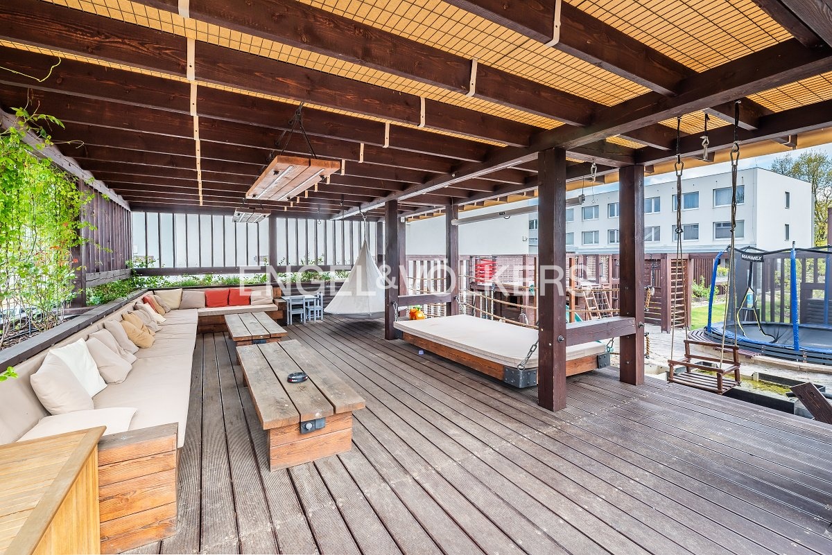Velkou výhodou a naprostou unikátností tohoto bydlení je sdílené wellness zázemí, kde bude nájemce moci využívat slunnou terasu, venkovní bazén, dětské hřiště, letní kuchyni, saunu, gril a společenskou místnost. Zároveň je lokalita vhodná pro milovníky venkovních aktivit - v blízkosti objektu se nachází stezka podél Vltavy vhodná pro cyklisty, bruslaře nebo běžce. Zároveň spoj na Smíchov je velmi rychlý cca 15 minut autobusem.