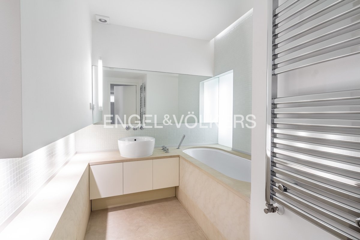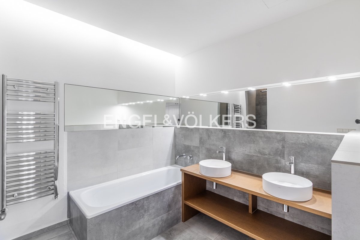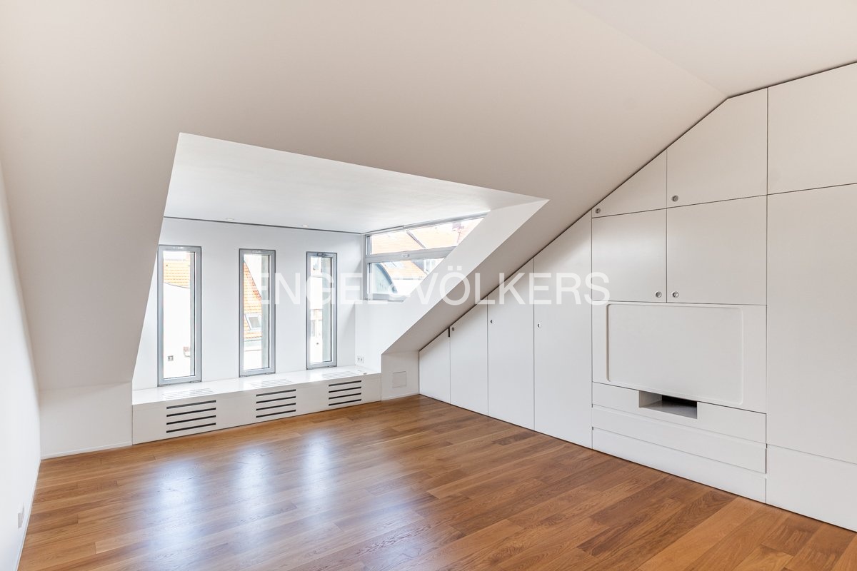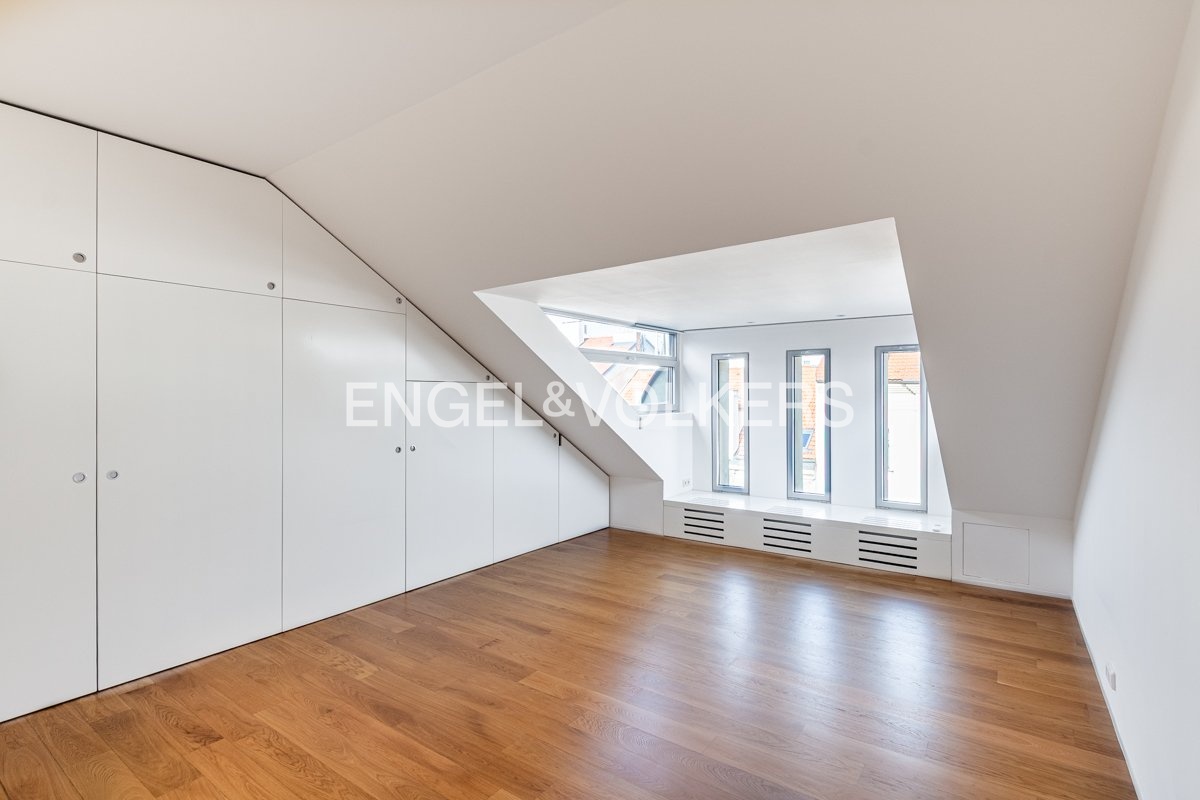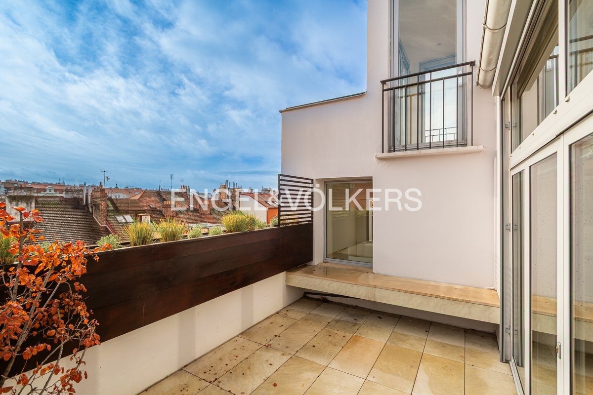 K pronájmu je k dispozici elegantní kompletně zrekonstruovaný penthouse s přímým vstupem z výtahu, umístěný v nejvyšším 6. nadzemním podlaží pečlivě renovovaného činžovního domu. Byt se vyznačuje třemi prostornými terasami, které jsou všechny orientované na jih a poskytují dostatek světla.