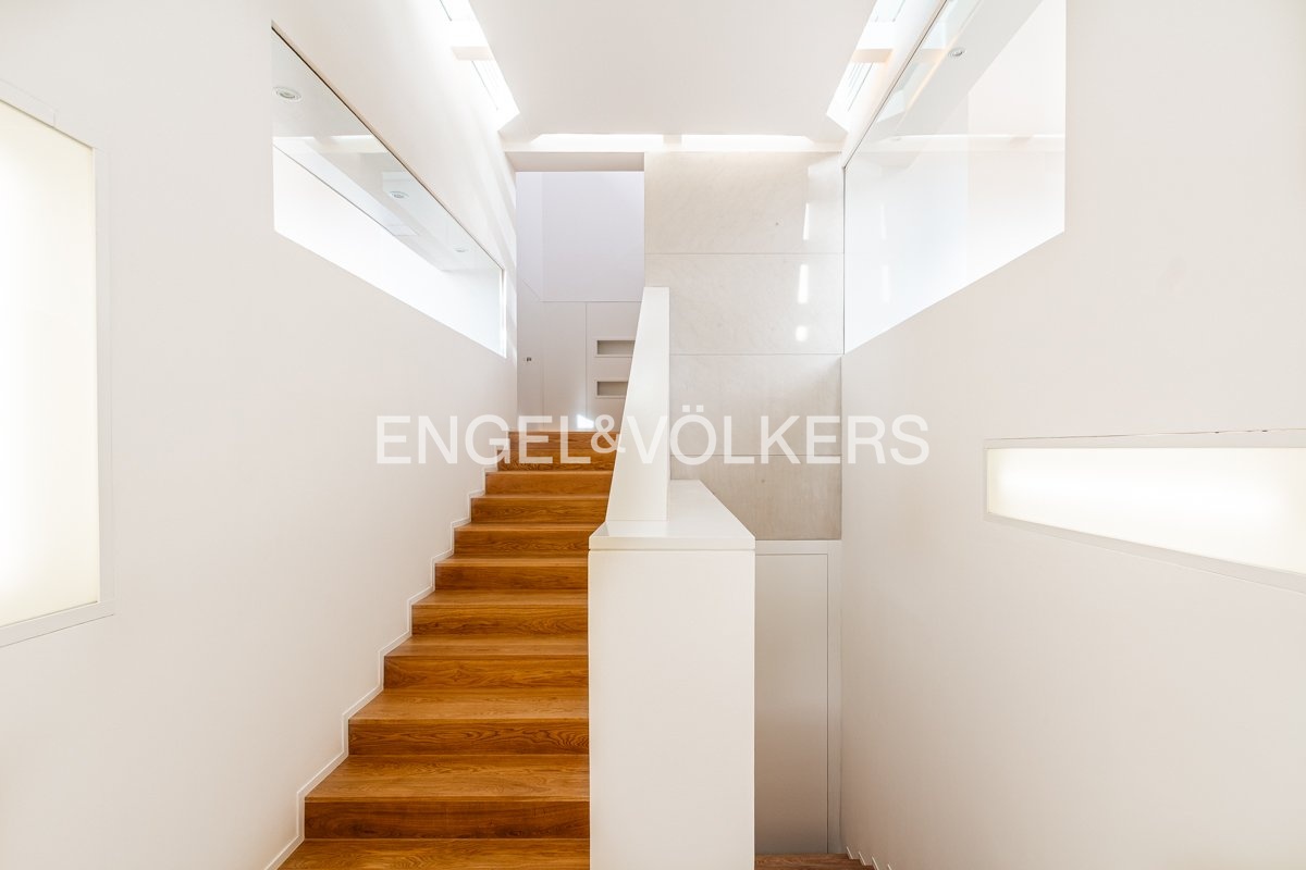 Hlavní úroveň bytu nabízí prostornou halu s dvojitou výškou stropu, obývací pokoj s terasou, plně vybavenou kuchyň s jídelnou a terasou, hlavní ložnici s en-suite koupelnou (vana a sprchový kout, toaleta), další dvě ložnice, samostatnou koupelnu (vana, toaleta), technické zázemí a toaletu pro hosty. V horním patře je galerie vhodná pro pracovní kout, jedna ložnice / herna / knihovna s třetí terasou a koupelna se sprchou a toaletou. Vstupní patro má chodbu s vestavěnými úložnými prostory a je přístupné přímo z výtahu.