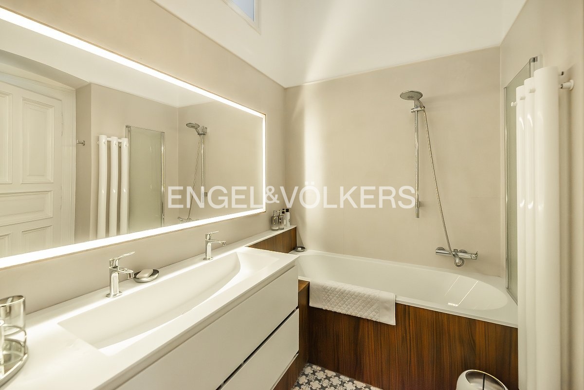Hlavní výhodou je umístění bytu – dům se nachází na Újezdě, byt je orientován do vnitrobloku a směrem k Petřínu, nikoliv do rušné ulice. Ložnice směřují do klidného dvora, obývací část do zeleně a na Petřín. V bytě tak panuje absolutní klid a soukromí.