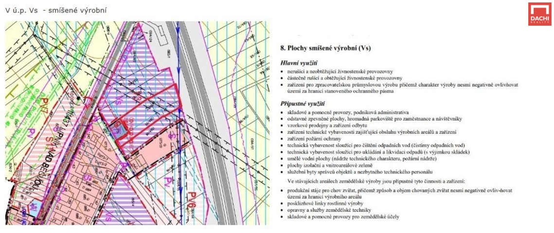 Pozemek je ideální pro firmy, které hledají kombinaci výroby, skladování a administrativy na jednom místě.