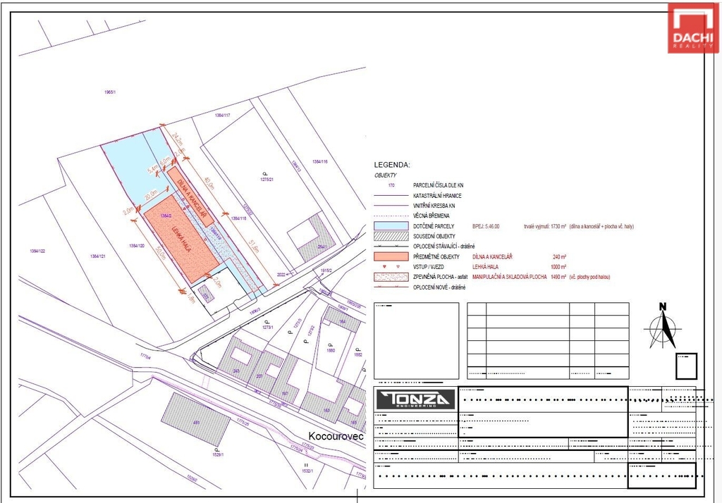 Pozemek Kocourovec, plochy smíšené výrobní, 3.714 m2, u Olomouce, dálnice D35,(Exit) 268.