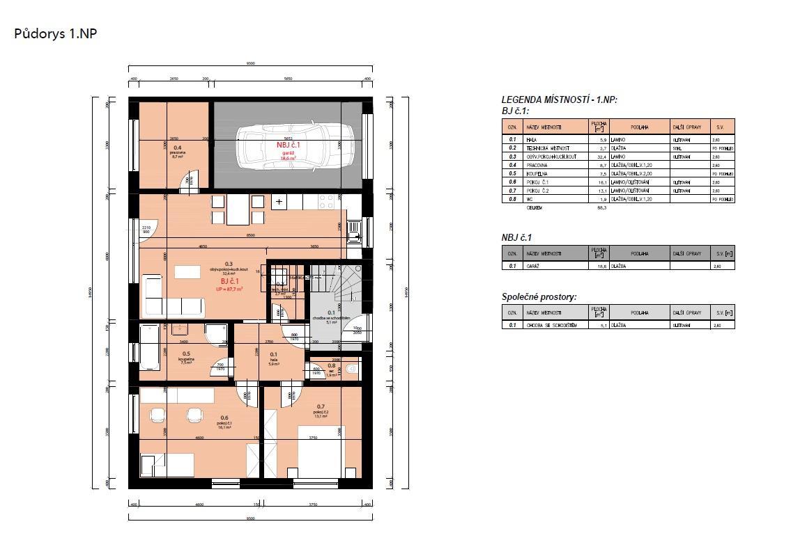 Prodej bytu OV 3+kk + pracovna - Pravlov - CP 88,3m2 - možnost zahrady u bytu - novostavba