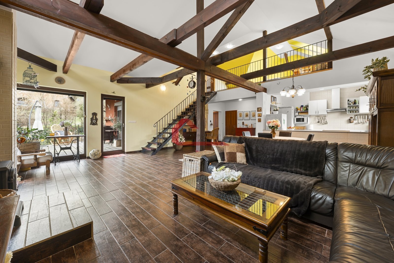 Patrový dům byl postaven jako dřevostavba v roce 2009 a nachází se na rohovém pozemku, dostupném i ze zahrady o celkové výměře 813 m2. K domu náleží terasu o velikosti 20 m2 přístupná jak z obývacího pokoje tak i z ložnice, ideální pro relaxaci.