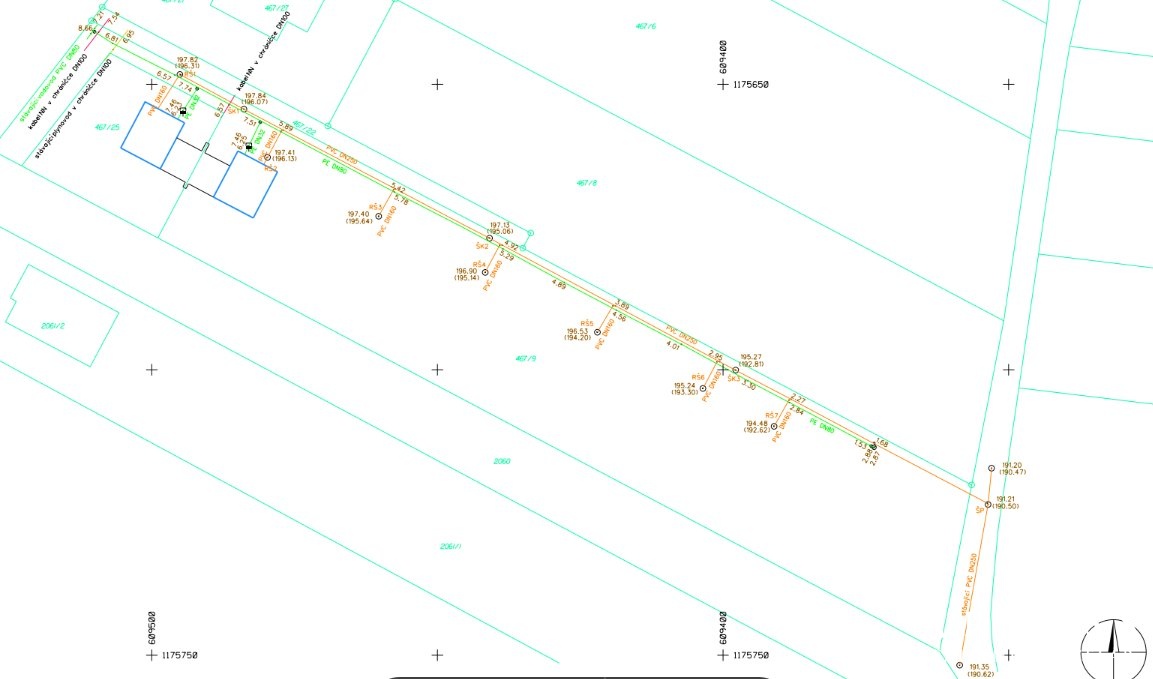 Sítě: Kompletní (elektřina, voda, kanalizace) na hranici
