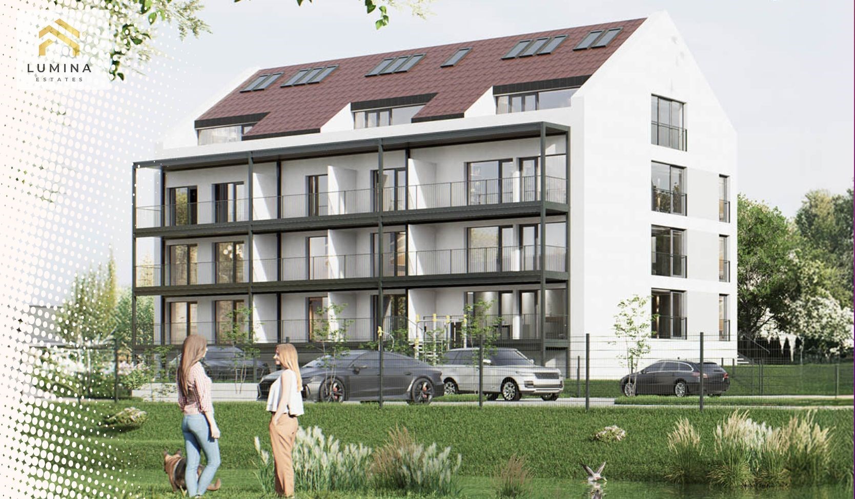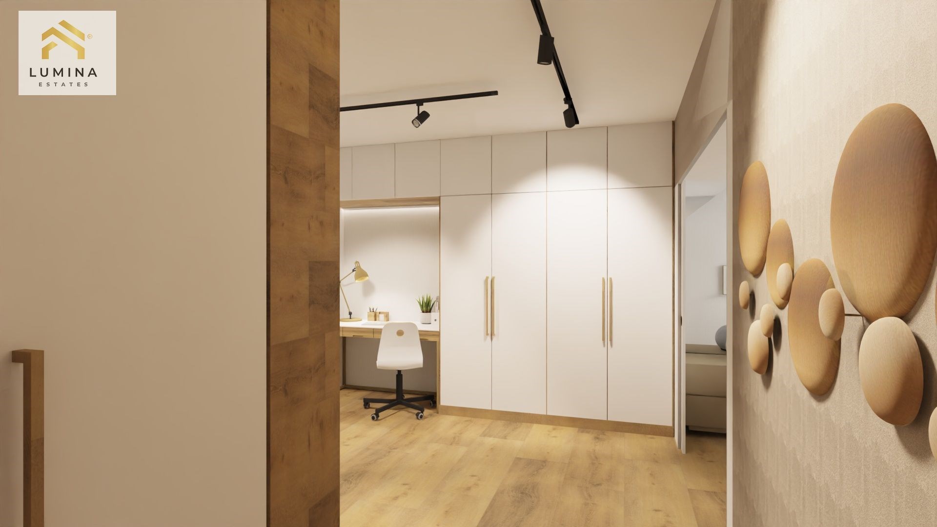 Interiér, zachycený na vizualizacích, pochází z autorského návrhu designérů Lumina Living – ztělesnění filozofie značky:světlo, harmonie, elegance.Místo, kde se moderní komfort setkává s tichem krajiny.