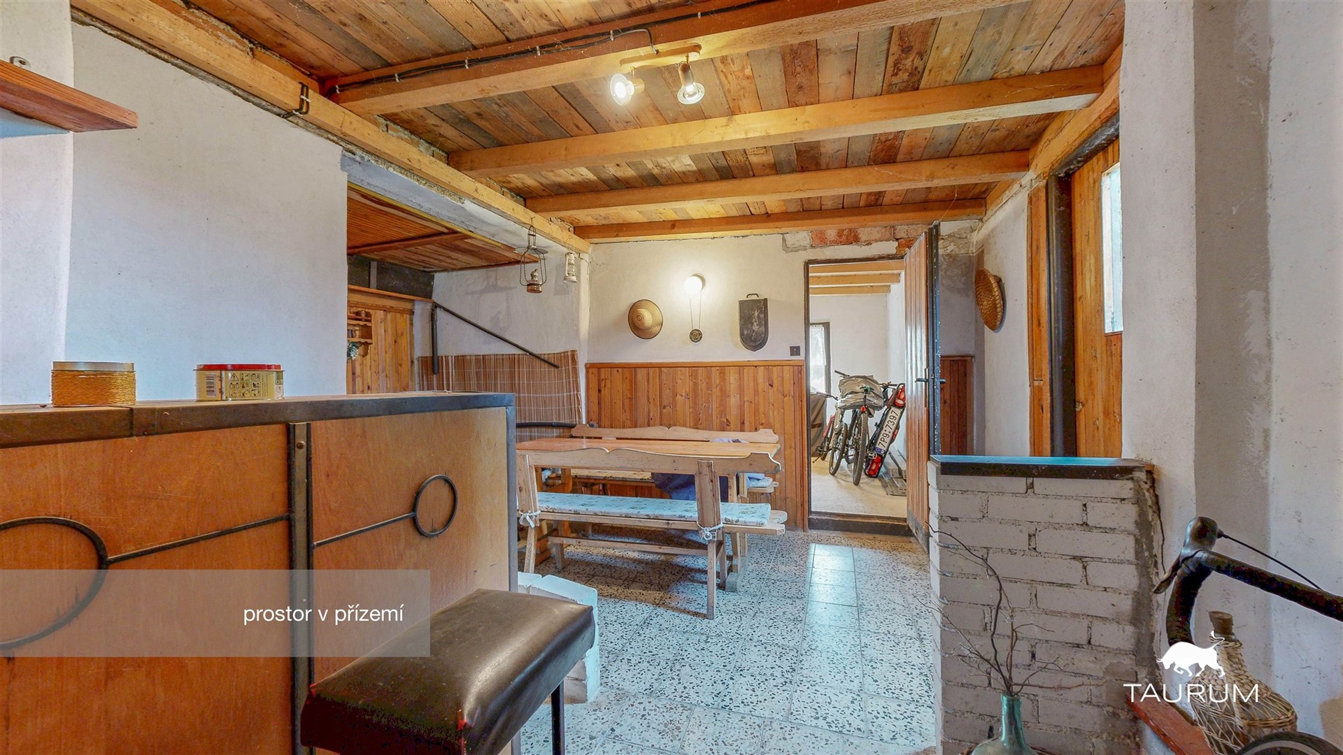 V přízemí jsou 2 obytné pokoje, kuchyň, koupelna, 3 komory, technická místnost s kotlem, a 3 další místnosti, které nabízí různé využití jako například sklad, dílna, pracovna apod…