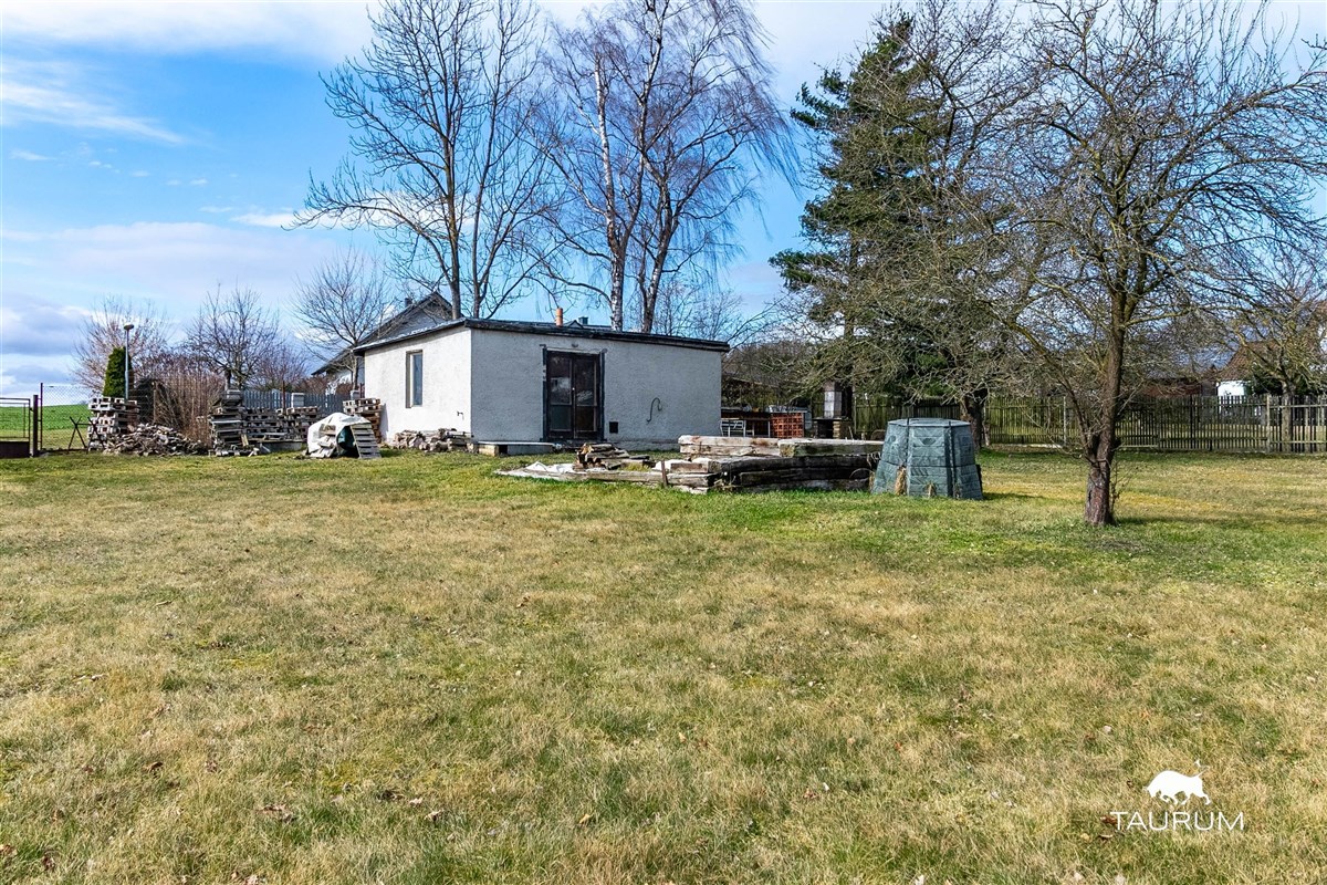 Velkou výhodou je rozlehlá zahrada. Celková výměra pozemku je 2.556 m2. Nabízí se tedy i varianta pozemek rozdělit a využít druhou polovinu k výstavbě druhého rodinného domu.