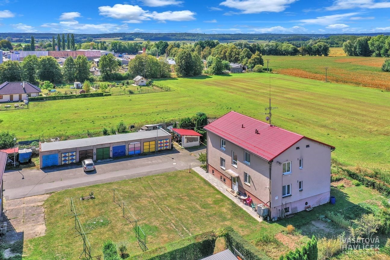 Součástí prodeje je i zděná cihlová suchá garáž na vlastním pozemku v dobrém technickém stavu. Vnitřní rozměr garáže 2,72 x 5,58 m. Vnitřní rozměr vrat 2,38 (šíře) x 2,09 m (výška). Na střeše jsou položeny asfaltové pásy. Betonová podlaha. Plechová dvoukřídlá vrata. Rozvod elektřiny připojen.