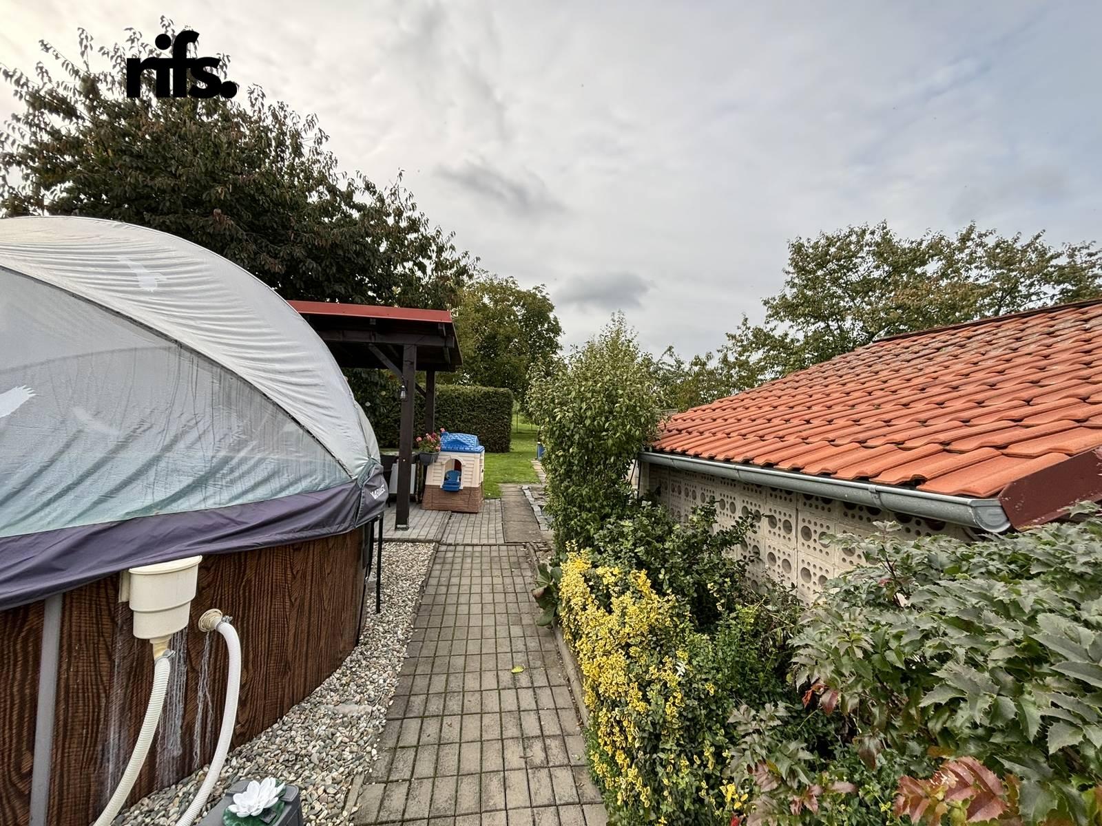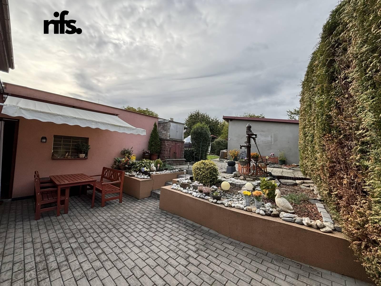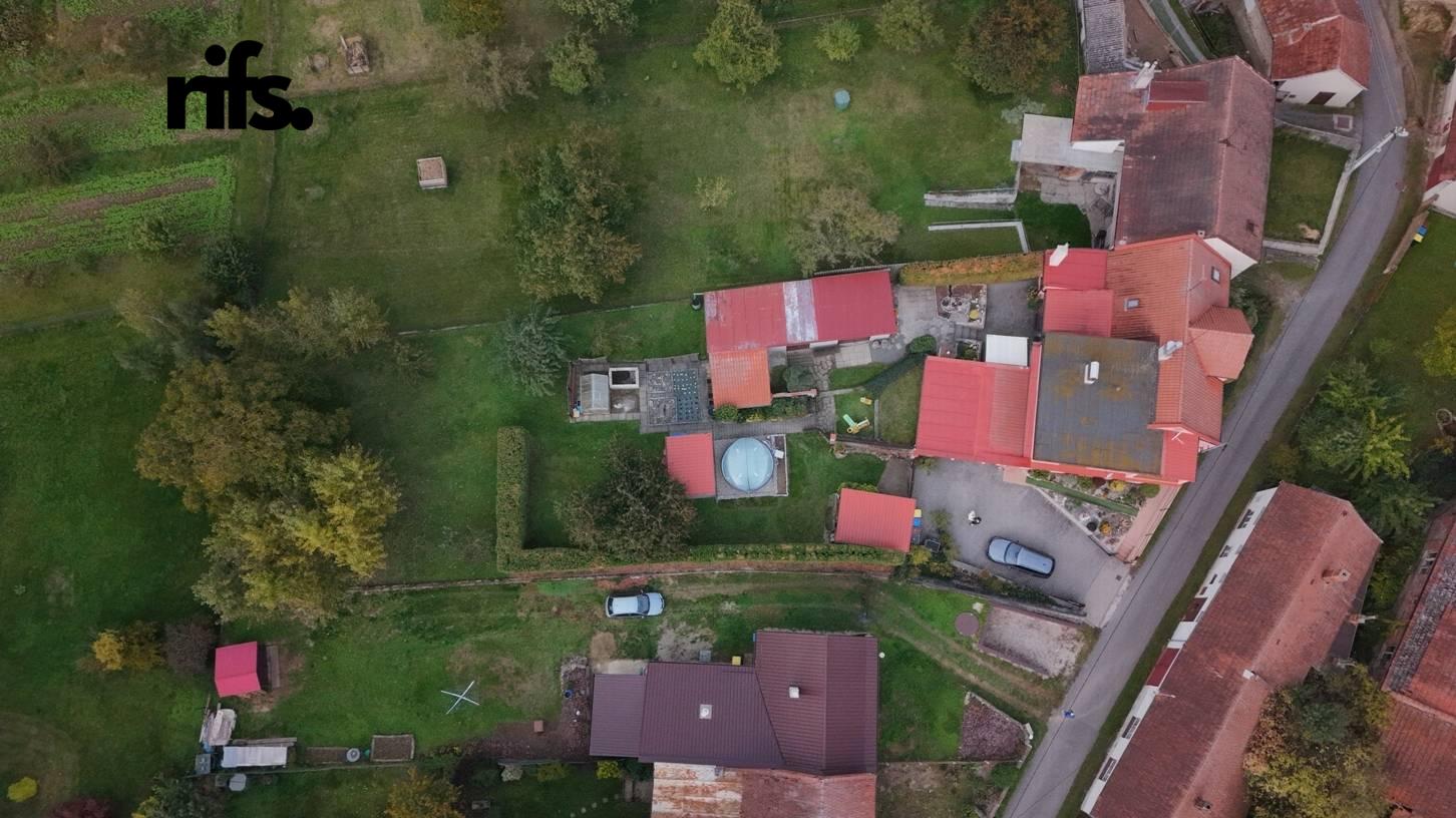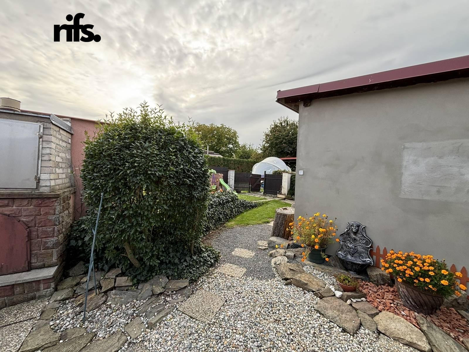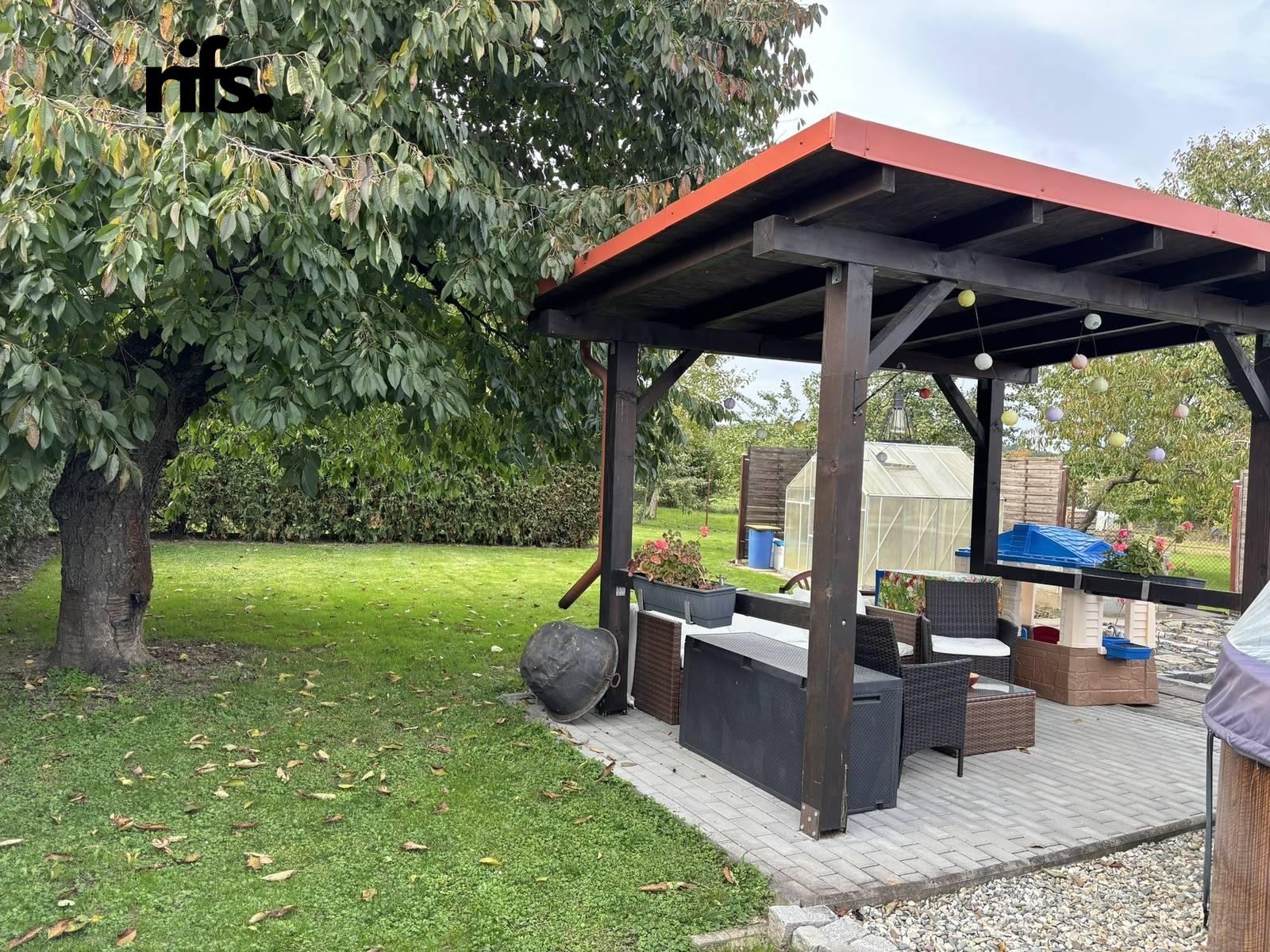 Součástí pozemku jsou také zděné přístavky pro uskladnění zahradní techniky, vinný sklípek, zahradní pergola, kryté posezení s udírnou, bazén a rozsáhlá zahrada s ovocnými stromy, odkud se otevírá krásný výhled do okolní přírody.