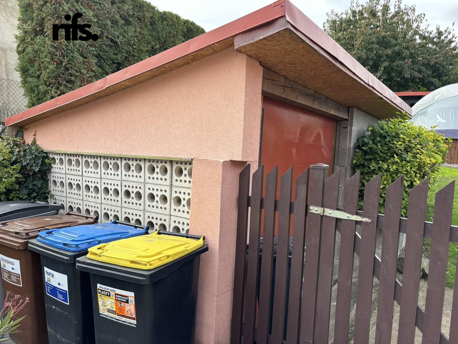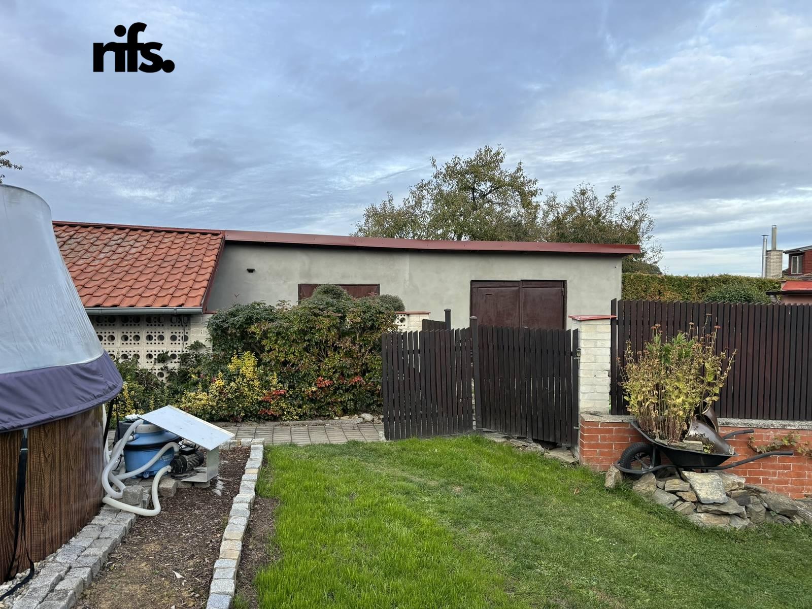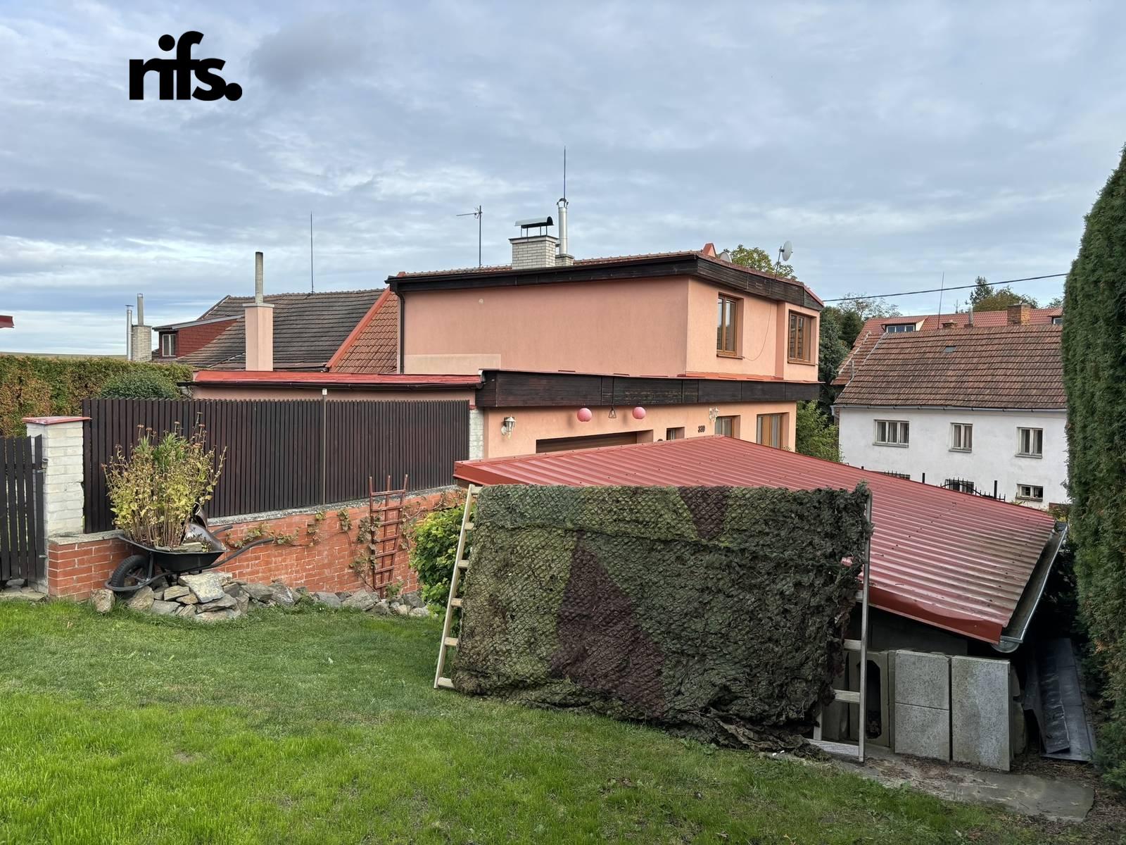 K nemovitosti náleží zděná garáž pro dva vozy a parkovací stání pro 3–4 auta před domem.