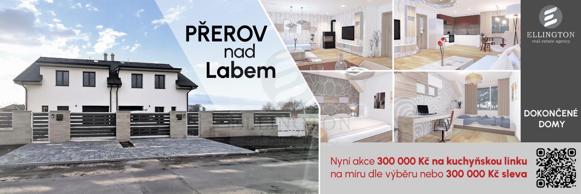 AKČNÍ NABÍDKA !!! Poslední dva domy ! Hledáte ideální byt pro Váš vysněný domov? Nabízíme Vám nízkoenergetický patrový byt o dispozicí 4+kk, 126 m2, s garáží parkovacím stáním, terasou a zahradou 421m2. Při vstupu do bytu se nachází zádveří se vstupem z garáže a první ze dvou koupelen s WC. Dále vejdete do obývacího pokoje s krbem, který je propojen s kuch.koutem a výstupem na velmi prostornou rohovou zahradu 421m2. V prvním patře můžete najít 2 pokoje s prostorem pro vest.skříně a třetí pokoj se šatnou. Také se zde nachází druhá koupelna s vanou a sprchovým koutem. V celém domě je podlahové vytápění, které bude napojeno na tepelné čerpadlo. Vnitřní provedení je možné ještě zvolit podle vašeho individuálního výběru (podlahové krytiny, obklady, dlažby, sanitární keramika, dveře a zárubně). , které je součástí ceny. Mimo jiné je v ceně i kompletní oplocení pozemku s brankou a bránou, zpevněná parkovací plocha pro dvě auta, chodník vedoucí keke vstupním dveřím, dům bude zkolaudován, příprava na elektrické venkovní žaluzie pro komfort a soukromí, možnost i příprava na klimatizaci. Tento moderní dům nabízí kvalitní a úsporné bydlení v příjemném prostředí s výbornou dostupností. Přerov nad Labem je malebná středočeská obec s plnou občanskou vybaveností, ideální pro rodinné bydlení. Nachází se v blízkosti dálnice D11, což zajišťuje výbornou dostupnost do Prahy. Místní autobusová doprava plynule navazuje na vlakové spojení směrem na Masarykovo nádraží. V obci se nachází mateřská škola i základní škola s výukou do 9. třídy. V obci je bohatý komunitní život působí zde myslivecký a rybářský spolek, dobrovolní hasiči i fotbalový klub. Díky své poloze a občanské vybavenosti nabízí ideální kombinaci klidného venkovského bydlení s výbornou dostupností města. Zajištěné financování.
