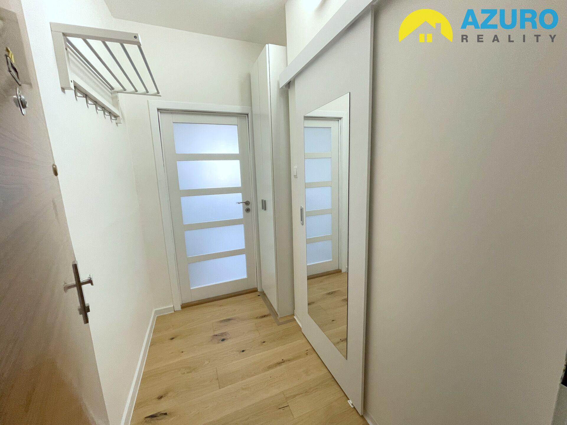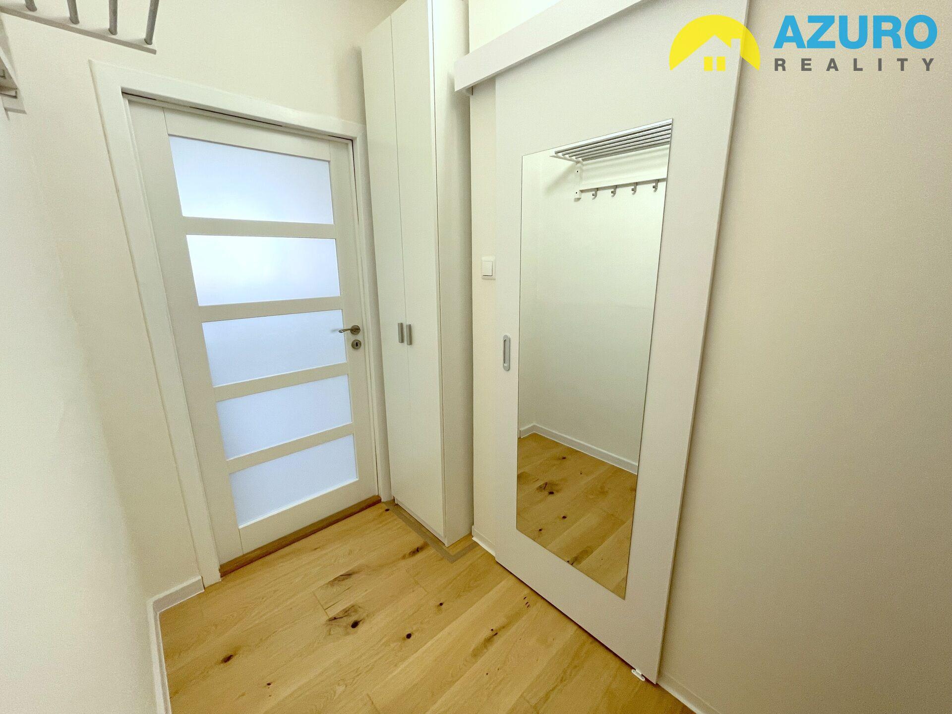 V bytě nová kuchyňská linka s varnou deskou, digestoří a lednicí, ve stejném designu zůstává i komoda s nízkou skříní a v předsíni vysoká skříň. Vyzděná koupelna nabízí praktický sprchový kout, umyvadlo se skříňkou, toaletu a přípojku k pračce i sušičce. Pokoj a předsíň vybaveny vkusnou dřevěnou podlahou. Orientace bytu je na východní stranu a nabízí velmi příjemný výhled k zahradám přilehlých rodinných domků. K bytu náleží sklepní kóje.