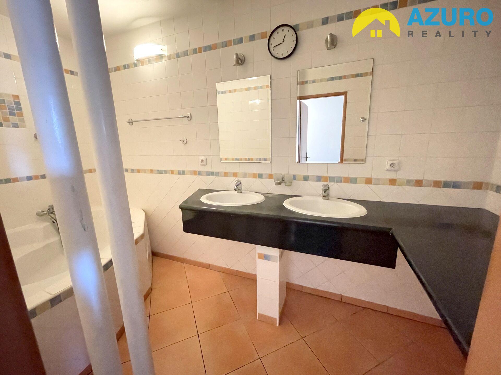 V bytě kuchyňská linka s vestavěnými spotřebiči (plynová varná deska, el. trouba, digestoř) a lednicí, koupelna s rohovou vanou, dvěma umyvadly, samostatné WC, šatna, 3 pokoje se samostatnými vstupy, podlahy parkety / dlažba / koberce. V bytě zůstává část zařízení.