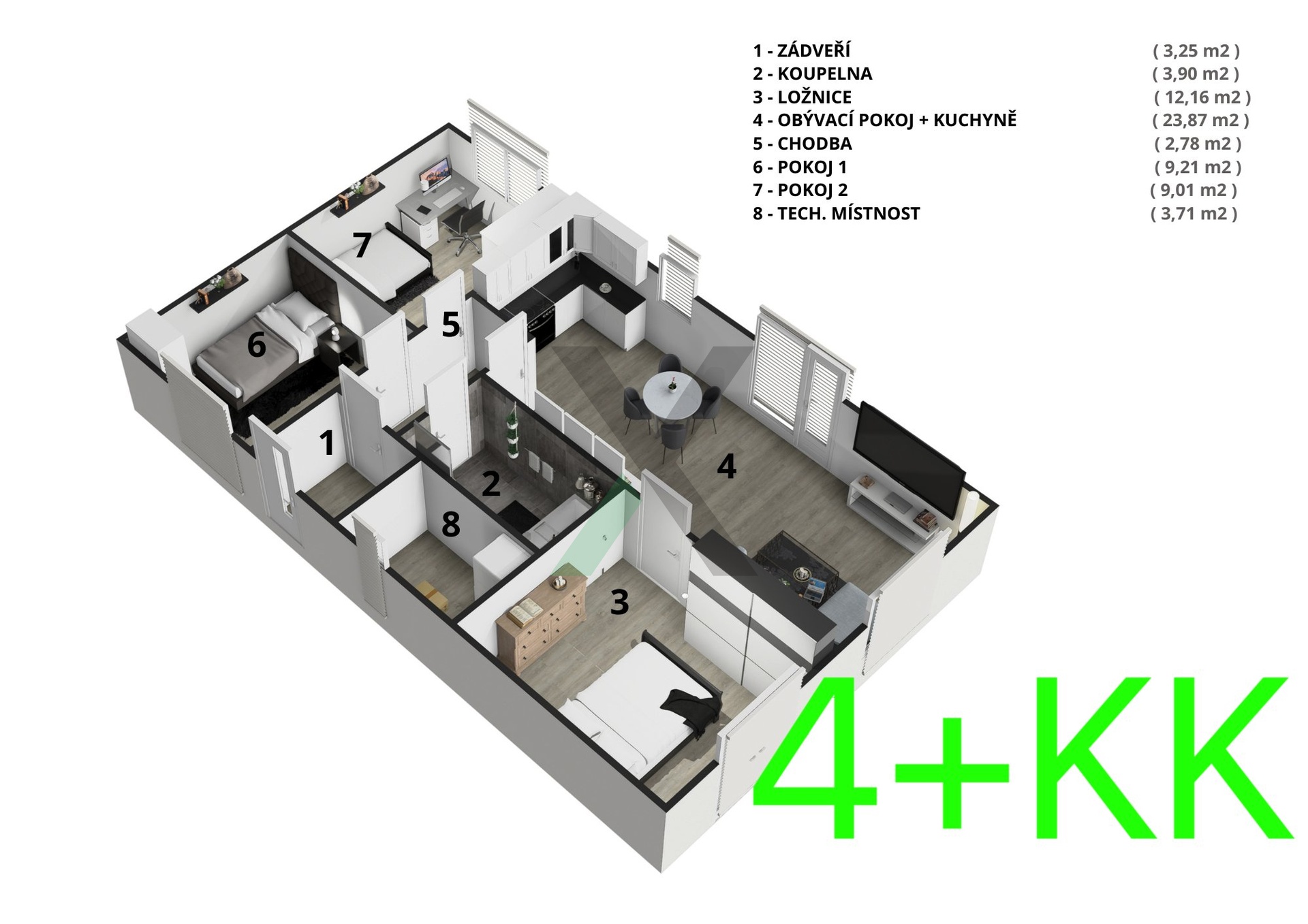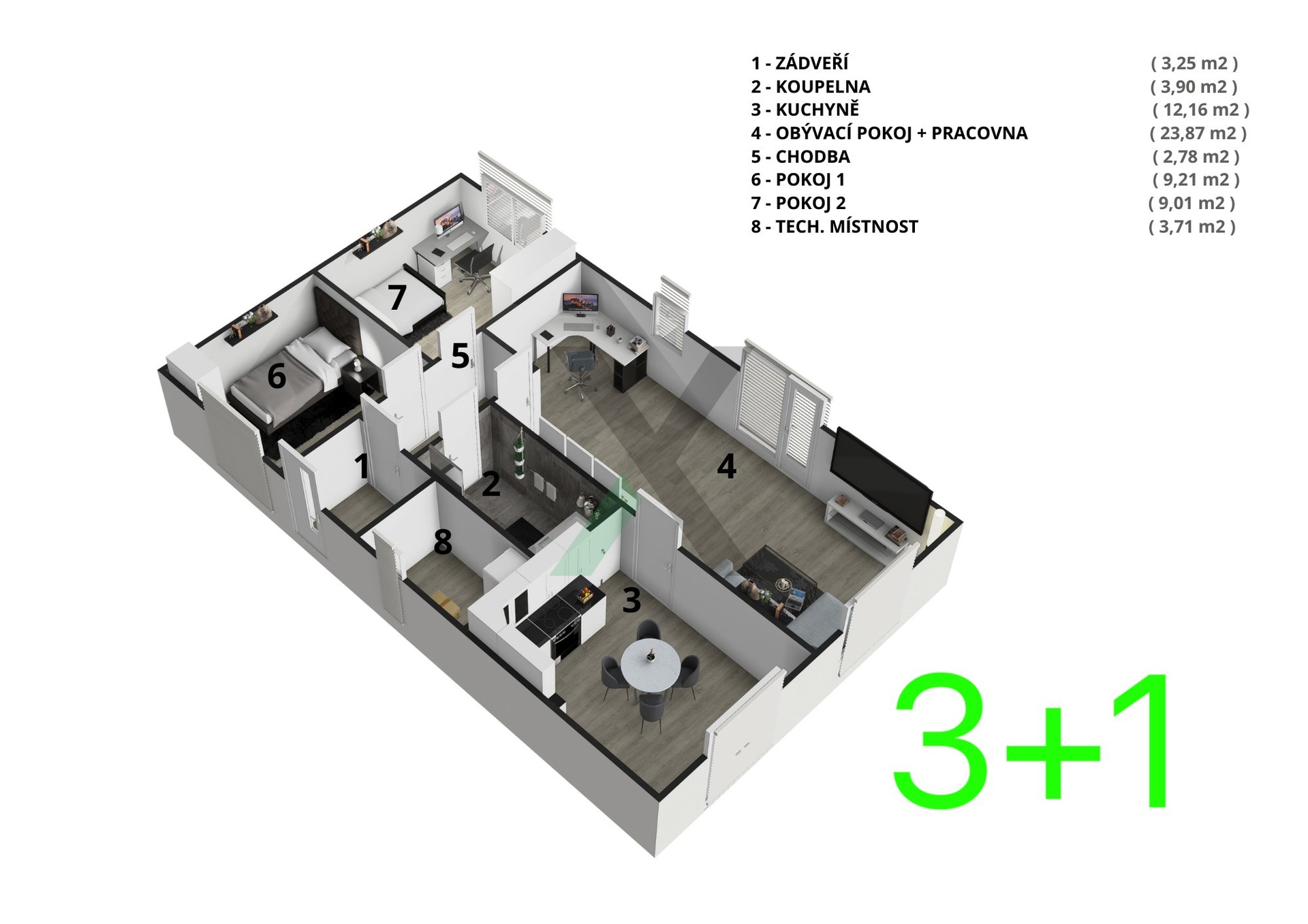 Jednotlivé místnosti mají výměry: