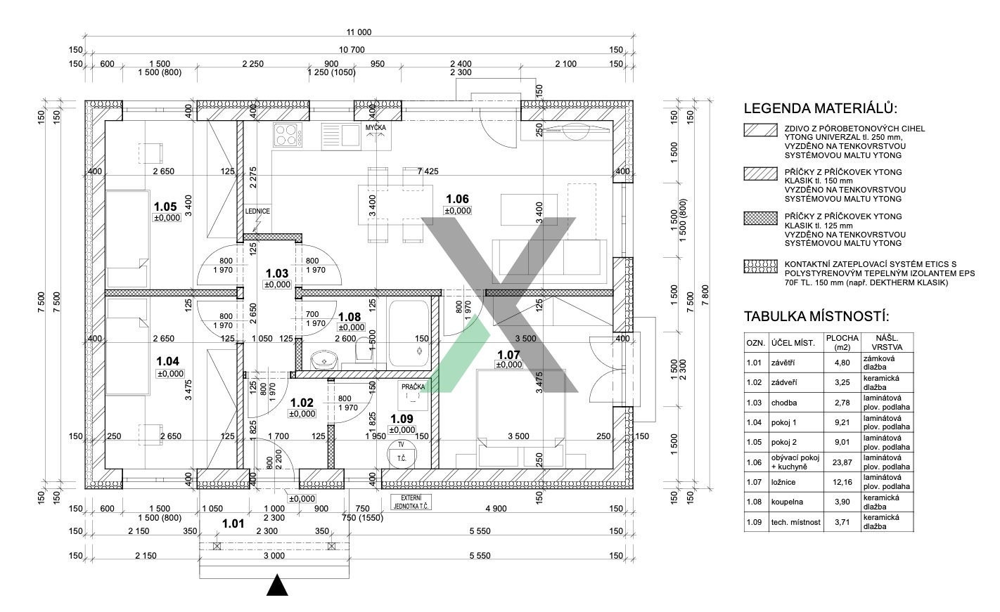 • Zdivo z pórobetonových tvárnic, střecha z pálené tašky